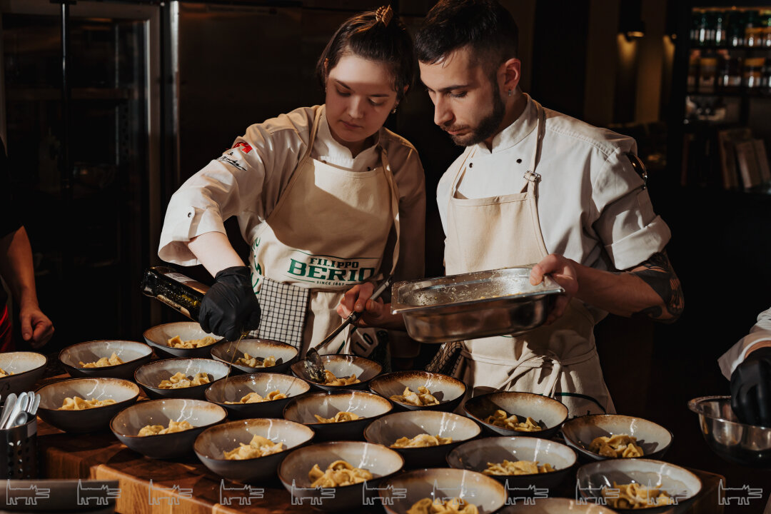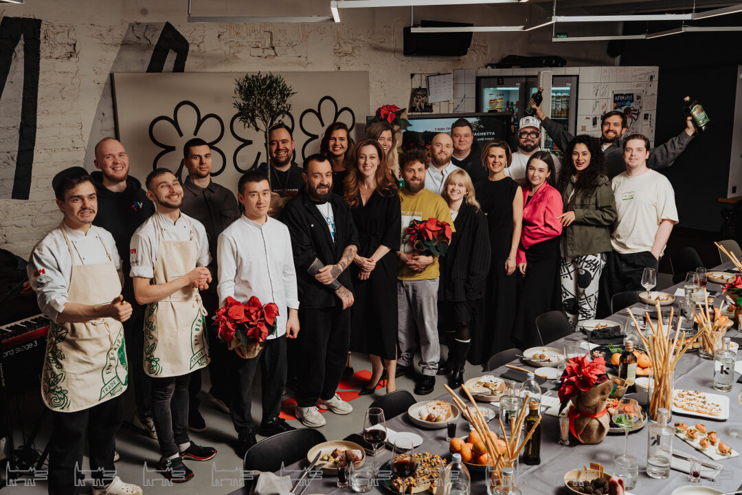 За столом встретились настоящие гуру итальянской и средиземноморской гастросцены Петербурга — мультиинструменталист из Dreamteam Илья Бурнасов, бренд-шеф Fresa's Restaurant Group Тимофей Милюков и Владислав Винклер из Tel Aviv by Saviv, шеф Jerome Павел Циклинский, бренд-шеф проектов italy (Jam Cafe, Ателье tapas&bar, Juan Cantina Espanola и Bist) Сергей Гальцев, а также шеф-повар Bist Владимир Полторацкий и Виктор Кислинский, бренд-шеф ресторанов Joli Grand Bistrot и HITCH. Кондитеров на ужине представлял создатель артхаусных десертов Стас Пауль из Duo Band.