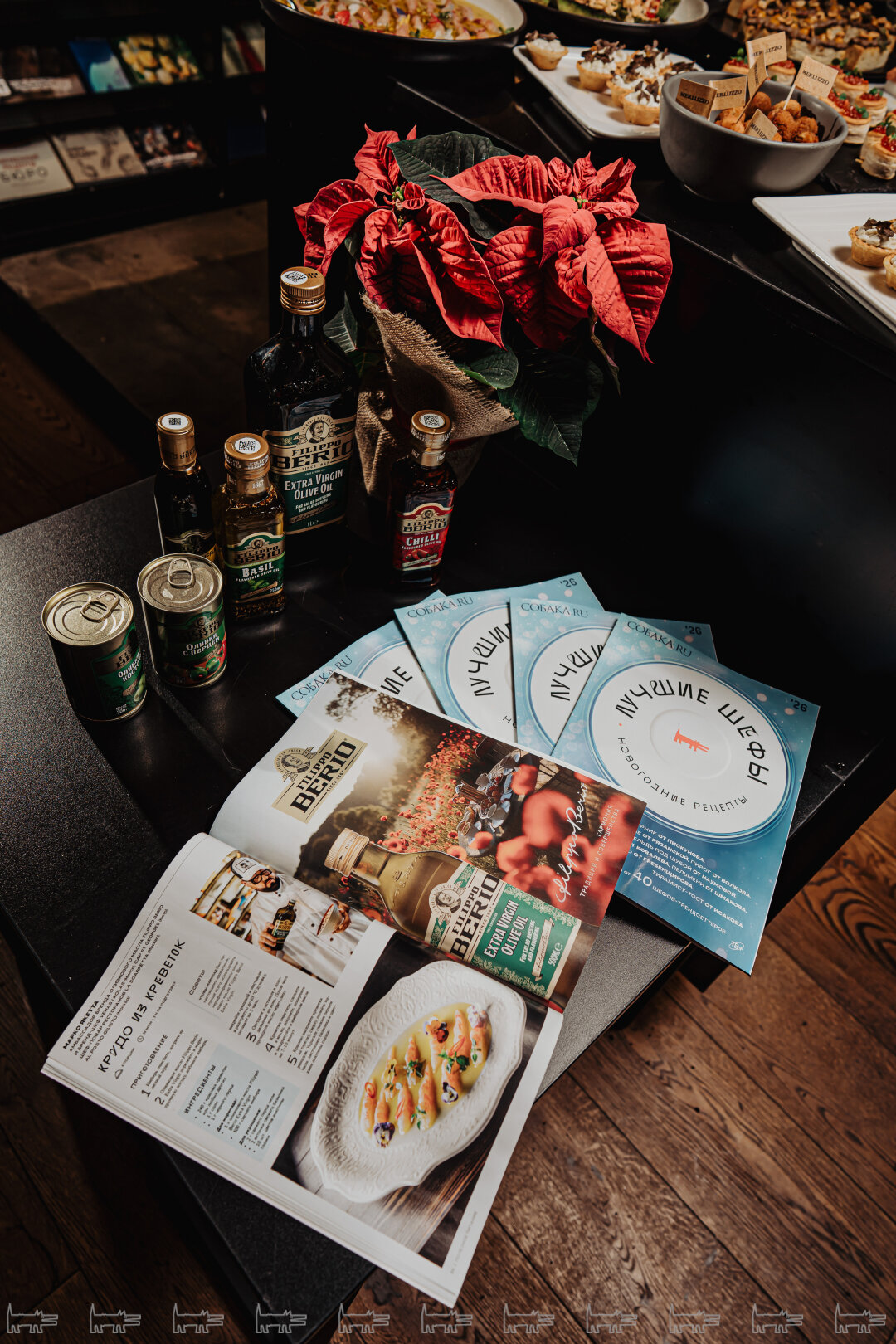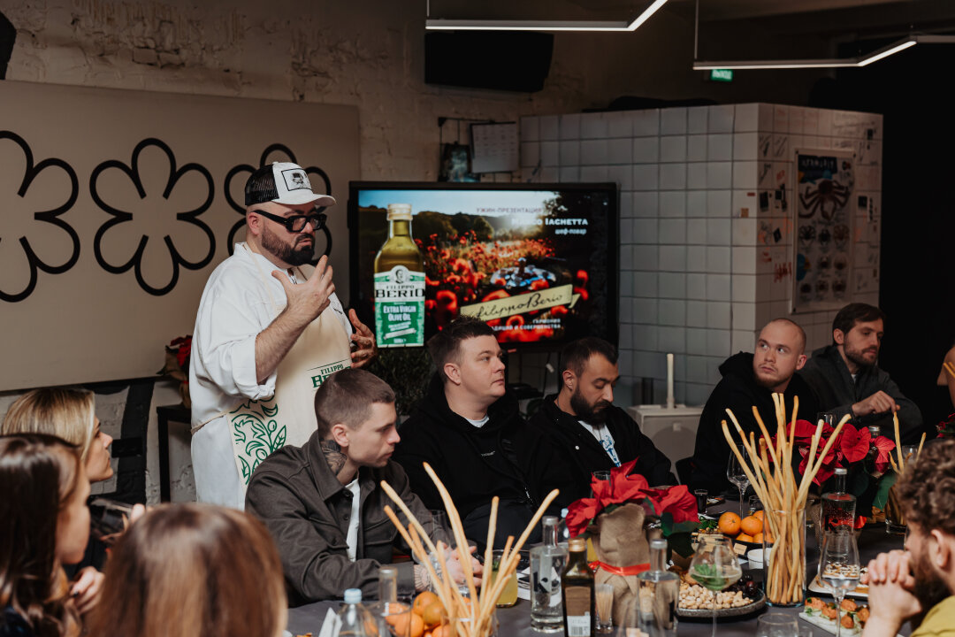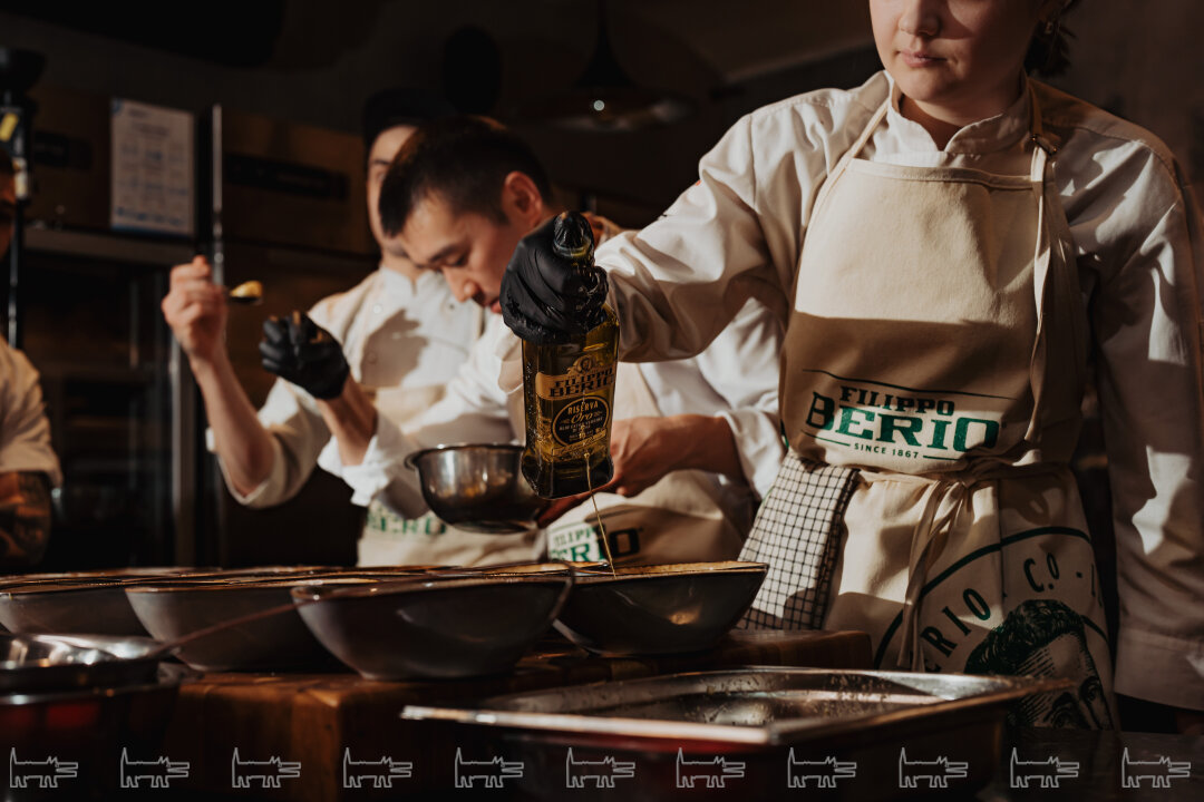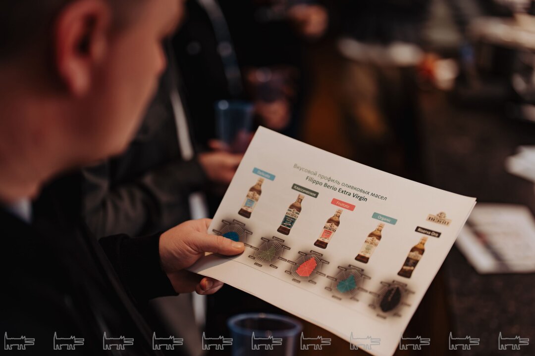 Перед ужином состоялась дегустация разных вариаций оливкового масла. Марко раскрыл шефам все тайны — какой температуры и какого сорта должно быть масло, чтобы оно идеально раскрыло вкус блюда. Итальянский шеф рассказал, что для своих кулинарных шедевров предпочитает использовать оливковое масло FILIPPO BERIO — компании со 150 летней историей родом из тосканской Лукки, которая хранит мастерство и наследие в каждой бутылке.
