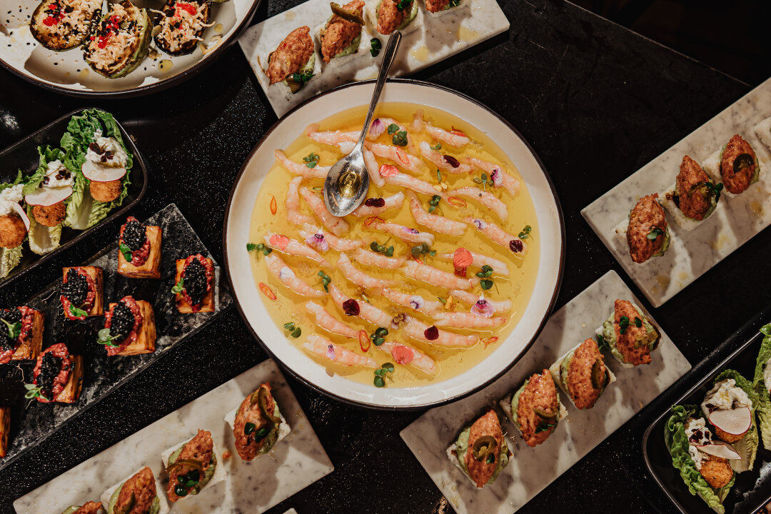 Гостей вечера встречали с поистине итальянским гостеприимством: на аперитив — легкие средиземноморские закуски с акцентом на морепродукты и коктейли на основе джина и мартини.