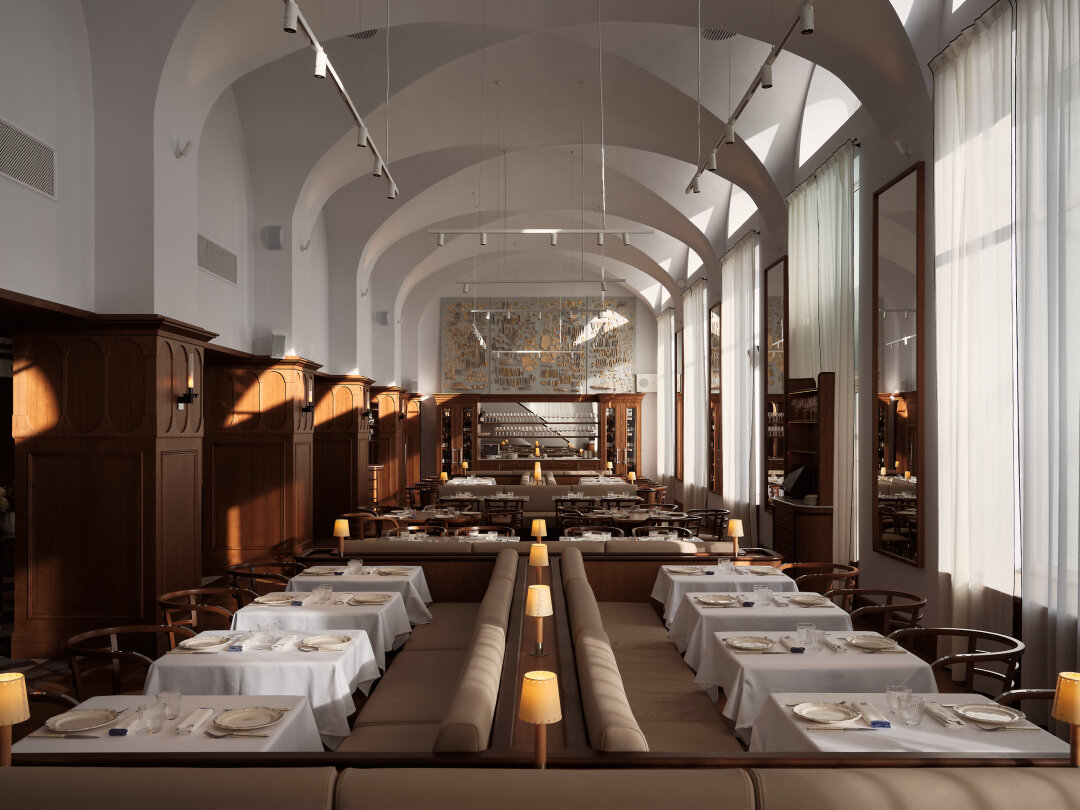 Блинов: Мы это предусмотрели: скоро добавим в эту гостиную мебель, чтобы аперитив или дижестив можно было тянуть на диванах. По соседству встанет маленький бар. На втором этаже у нас уже работает пекарня: там мы печем хлеб и слойки для всех проектов Duo Band. И будет частная гостиная человек на 20–30 — для семейных застолий.