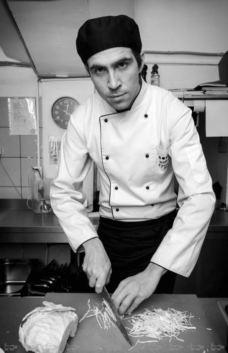 Поход в ресторан должен быть как визит в кинотеатр — нужно испытать то, чего не случится у тебя дома. Как и у фильмов, у каждого блюда в нашем меню есть история, образ, ассоциации, идеологический замысел и, главное, гастрономический сюжет. Они у меня всегда — из вкусовой памяти о еде детства и юности. Например, есть такой образ- воспоминание — разогретые на костре консервы «Завтрак туриста». По его мотивам мы готовим мотивам тартар из подкопченой говядины с перловкой, формуя его кольцом из жестяной консервной банки. Новая русская кухня нашего ресторана сделана только из локальных продуктов, а меню меняется вслед за графиком появления даров природы.