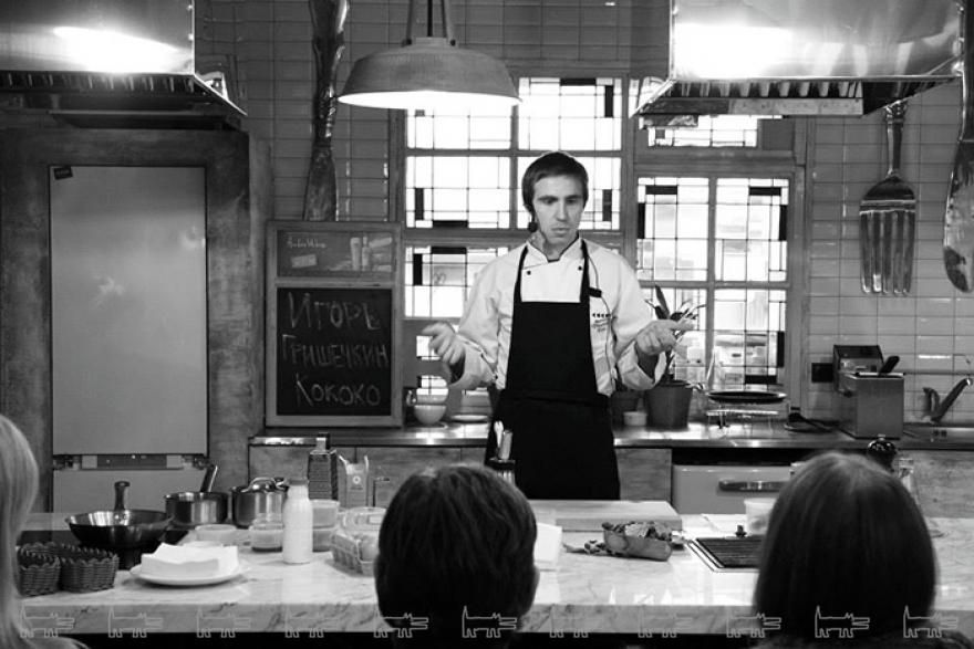 Певец ладожского судака и волосовского щавеля сделал ресторан Матильды и Сергея Шнуровых «КоКоКо» меккой для приезжих гурманов. Каждое из десятка сет-меню, выданных Гришечкиным за год, претендует на статус национального достояния, что неудивительно. Например, его «Балтийский берег» — это композиция с галькой из орехов и янтарем из меда. Популяризатор локальных продуктов добивается успеха за счет изощренных технологий, поэтичной легенды для каждого блюда и фантазийной подачи.