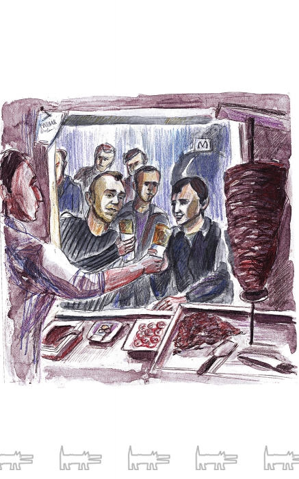 Главное, что появилось в 1990-х, — это шаверма. Ларьки и кафе, торгующие ею, открывали условные студенты инженерно-строительного института, приехавшие из Сирии. У каждого из нас была своя любимая шаверма, поэтому все гастрономические споры велись вокруг того, где она самая крутая: на «Пионерской» или на «Василеостровской». Бывало, мы устраивали гастрономические туры. Собирались у Александра Адольфовича (Пузо), который говорил: «Я вам сейчас покажу высший класс шавермного искусства», — и мы ехали компанией пять человек на «Василеостровскую»: там рядом с выходом из метро была арка с ларьком. Раньше шаверму заворачивали чуть ли не в туалетную бумагу, это потом появились пакетики, гондончики и она приобрела более цивилизованный вид.