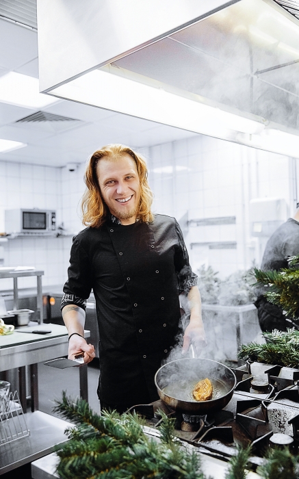 Я родился в Петропавловске, на севере Казахстана. Всегда любил поесть и сравнивал блюда, которые готовят разные взрослые, со стряпней моей бабушки — она была лучше всех. Поэтому когда пришло время выбирать колледж, я не сомневался, что мне нужно идти в поварской. Не скрою, моментами я на него забивал — у меня тогда была своя рок-группа. После переезда в Петербург у меня сначала не было здесь друзей, так что ничего не оставалось, как работать с утра до ночи. Сначала в «Карле и Фридрихе»: там огромное количество посадок, такие запары, что ломались и кости, и мозг. Потом трудился в «Гимназии», в terrassa, в «Кухне» и в «Антрекоте» (сейчас Jerome. — Прим. ред.). На данный момент у меня два производства — демигляса и фуа-гра с утятиной, и я не собираюсь останавливаться. Из развлечений за то время, пока живу в Петербурге, я освоил серфинг — три года катаюсь на Финском заливе. Это не так просто, как кажется: надо следить за прогнозами, ждать нужной погоды, запастись терпением. Мой путь шефа такой — это как в серфинге: если видишь возможность-волну, просто бросай все и беги на нее, седлай, мчи. Это очень непросто, но результаты того стоят.
