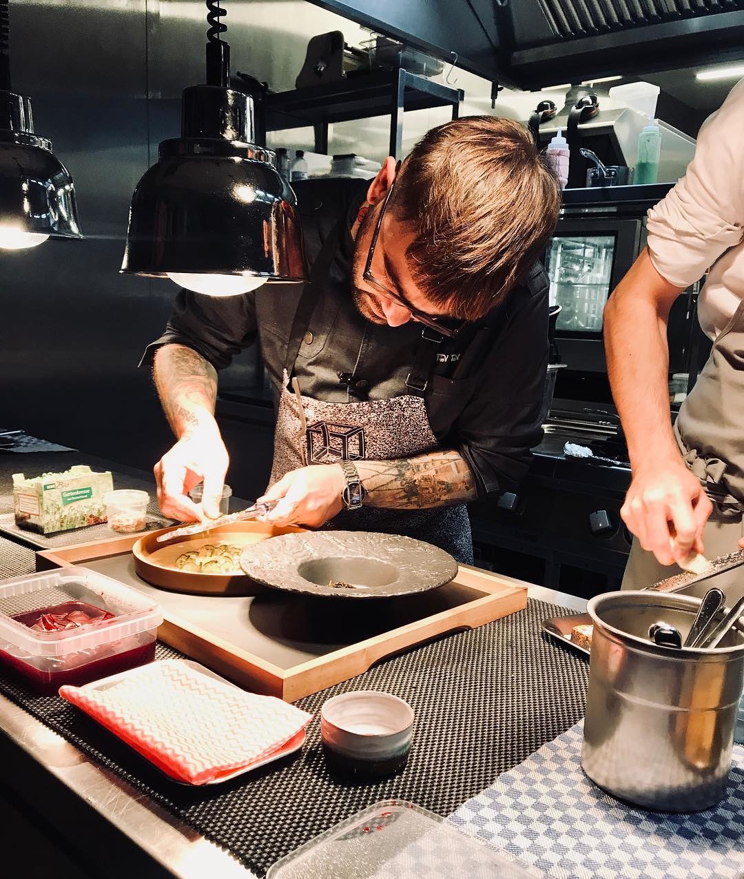 Мне повезло. У меня работает семь поваров с очень богатым опытом. Взял мощного су-шефа, которого я, правда, искал довольно долго, полтора года! Он потом нашел мне поваров и кондитера, с которыми сам работал. Кондитеру 24 года, и чувак выдает такие вещи, что я просто в шоке: это серьезные, очень взрослые работы как по вкусовым сочетаниям, так и по технике. В среднем, мы работаем по 14 часов в день: выходим в 10 утра, заканчиваем в час ночи, иногда пораньше. Все зависит от посадки. В целом, у них классное отношение к делу. В Берлине очень большая нехватка кадров во всех индустриях. Например, один ресторан, имея две звезды Michelin и находясь в полтиннике лучших ресторанов (прим.ред. речь идет о проекте Tim Raue), закрыл обеденный сервис из-за нехватки персонала. Сейчас они открываются в семь вечера.