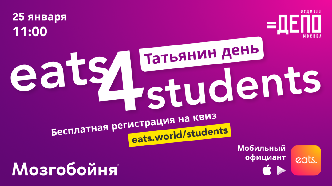 25 января в фудмолле ДЕПО МОСКВА состоится увлекательное мероприятие для студентов, где можно будет не только блеснуть своими знаниями, но и узнать много нового, а также попробовать (надев черные перчатки, конечно же) знаменитые бургеры из Black Star Burger по спеццене. И вот 4 причины сорваться на выходные в Москву.