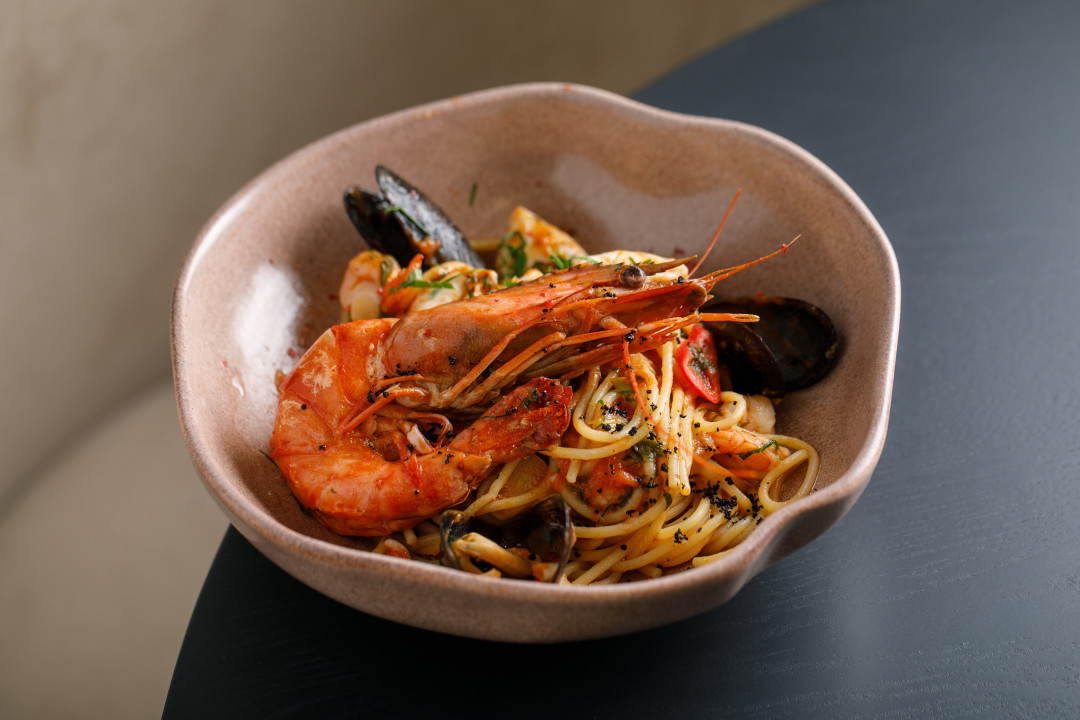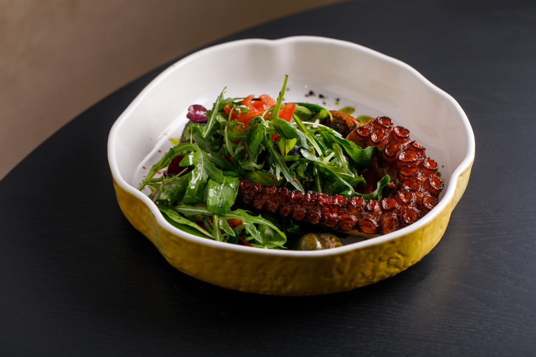 Первый уже открыт: кухня ресторана «Речной» основывается на рыбе и морепродуктах. Шеф-повар Александр Стегэреску (Ginza Project) определил в меню кругосветный гастрономический микс: средиземноморские пасты и пиццы, карпаччо из говядины в перуанском стиле, дальневосточные карри рамен, креветки, битые огурцы с дайконом и треску в мисо соусе. Речные представители тоже есть: килька, карп, сом и корюшка. В аквариуме обитают морские ежи, хасанская и императорская устрицы из Японского моря и залива Петра Великого; вонголе из Охотского и Японского морей; гребешок из Мурманска.