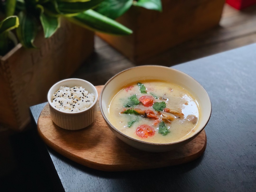 - Red Steak & Wine: салат цезарь (420 рублей), тайский суп том кха (360 рублей) и собу с овощами (450 рублей)