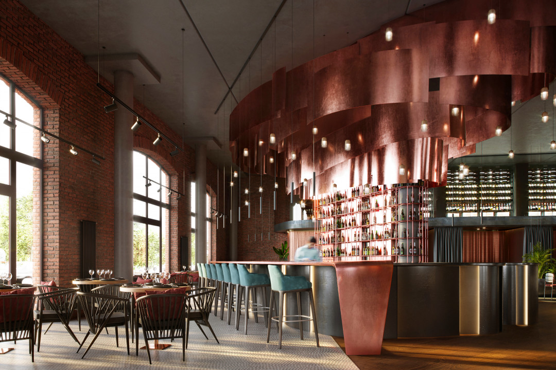 Над освещением пространства ресторана работают производители профессиональных световых систем Aledo.