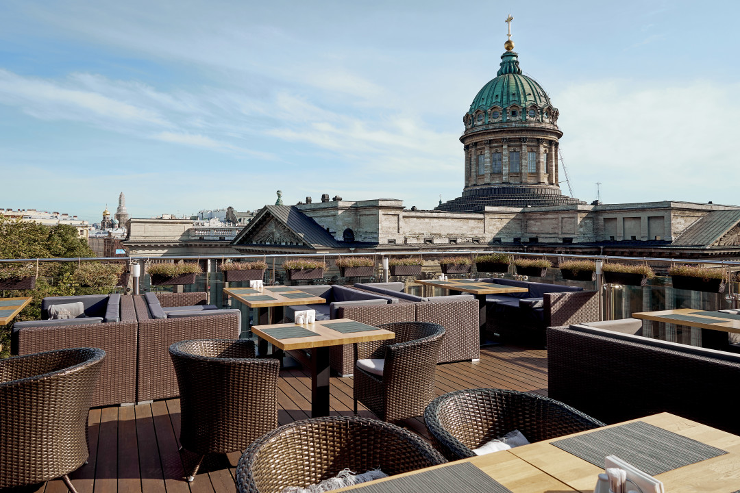 Созвучная всему летнему Terrassa представит солнечное и легкое сет-меню с карпаччо из сельдерея со свежим укропным маслом и грецкими орехами для полдника на свежем воздухе и средиземноморского настроения. Молодая морковь со страчателлой будет отвечать за соседство с бокалом игристого, а средиземноморский кальмар расставит все точки в завершении жаркого дня. В меню входит потрясающий вид на Казанский собор.