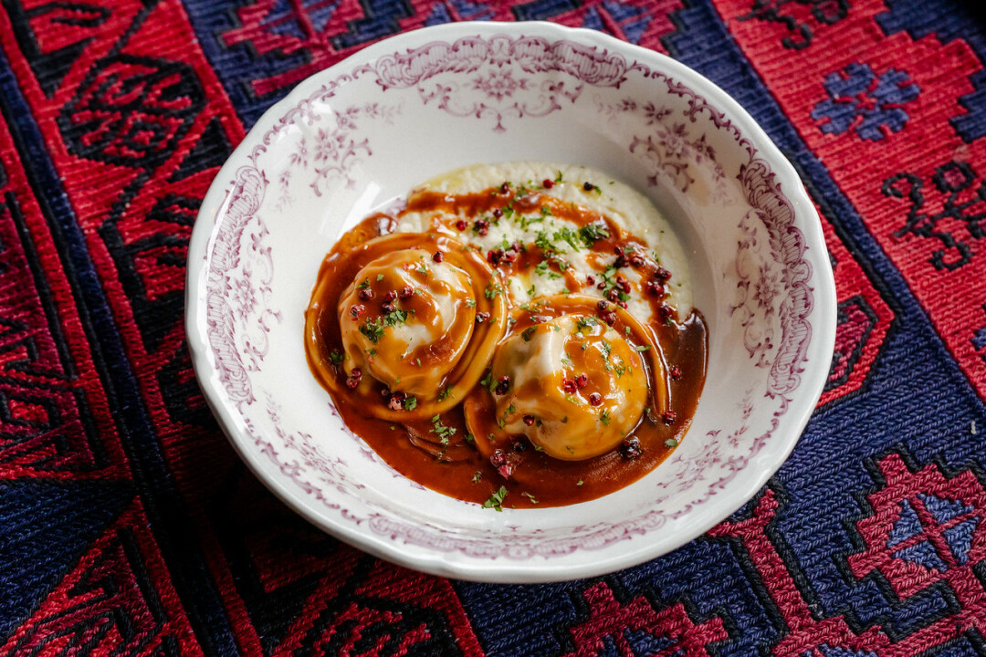 Только приступая к проекту, шеф-повар, выпускник шоу «Адская кухня» и давний друг Арама Мнацаканова, заложил в основу меню идеи современной грузинской кухни. Кроме главного бестселлера – хинкалей во всевозможных интерпретациях (от классики до мини-версий с говядиной в перечном соусе), – в списке хитов значатся хачапури по-аджарски, равиоли с кучмачи или бычьими хвостами, фирменный пхали и томленый чизкейк из мацони на десерт.