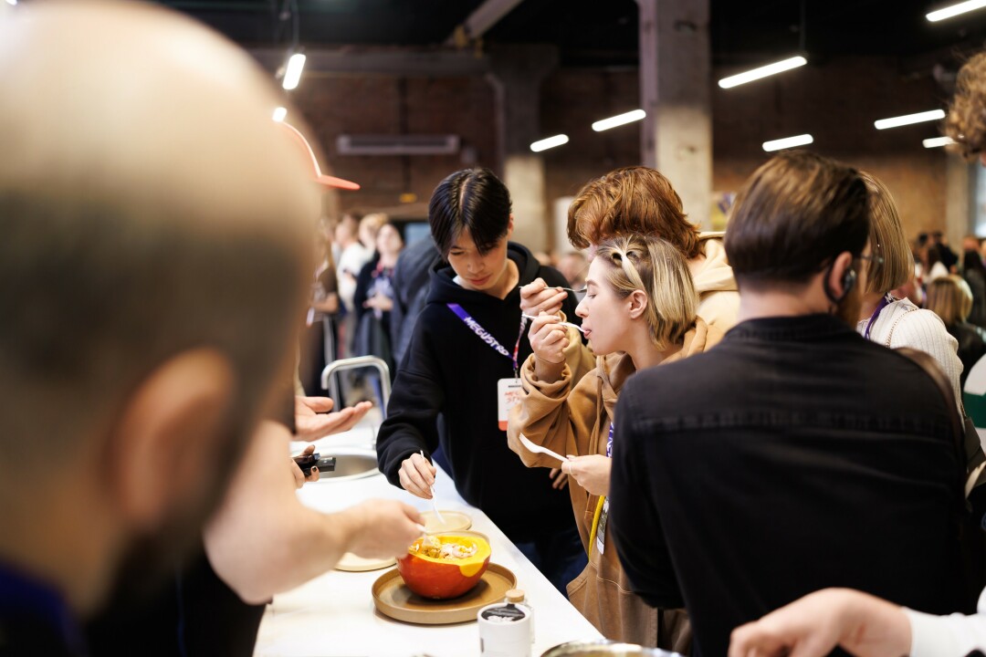 В перерывах между сессиями и дискуссиями все желающие могли попробовать российские продукты: мясо и сыры, пиво, лимонады и мороженое. Для ранних пташек работали кофейные станции, а для желающих задержаться до упора — бары, где готовили алкогольные (и не только) коктейли с креативной подачей. В фойе проходили мастер-классы, на которых, например, готовили пасту или брускетты. В общем, расписание было плотным, и хотелось в буквальном смысле слова успеть послушать, посмотреть и попробовать все!