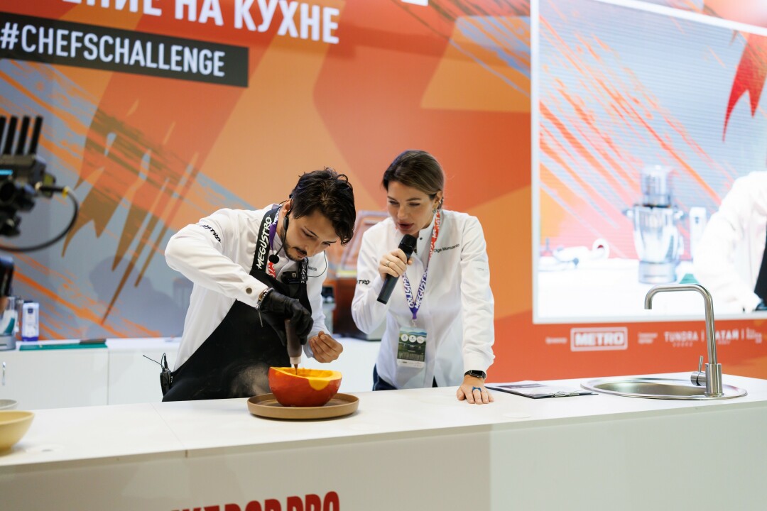 - А вдохновила на новые кулинарные подвиги гостей, пожалуй, самая зрелищная площадка фестиваля — Chefs’ Challenge. Здесь встречаются ведущие российские и зарубежные шеф-повара. На каждом из батлов было трудно найти место в зале: на то, как приглашенные шефы делятся частичкой своего мастерства — уникальной философией и техникой, — пришли посмотреть десятки людей.