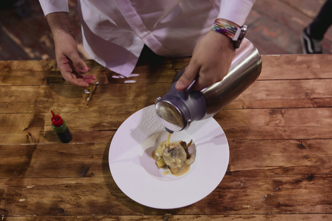 Четыре молодых (и перспективных!) шеф-повара из Санкт-Петербурга — Александр Богданов (бренд-шеф отеля «Гельвеция», ресторанов Café Claret и Marius), Тимофей Милюков (бренд-шеф Marso Polo и Saviv), Мансур Валиев (шеф-повар Ателье tapas&bar) и Сергей Гальцев (бренд-шеф проектов Gusto, Altro Beef Bistro и Juan Cantina Espanola) — презентовали свои оригинальные блюда, подготавливая и сервируя их прямо перед посетителями. Гости перемещались между станциями, знакомились с шефами и выбирали блюда-фавориты.