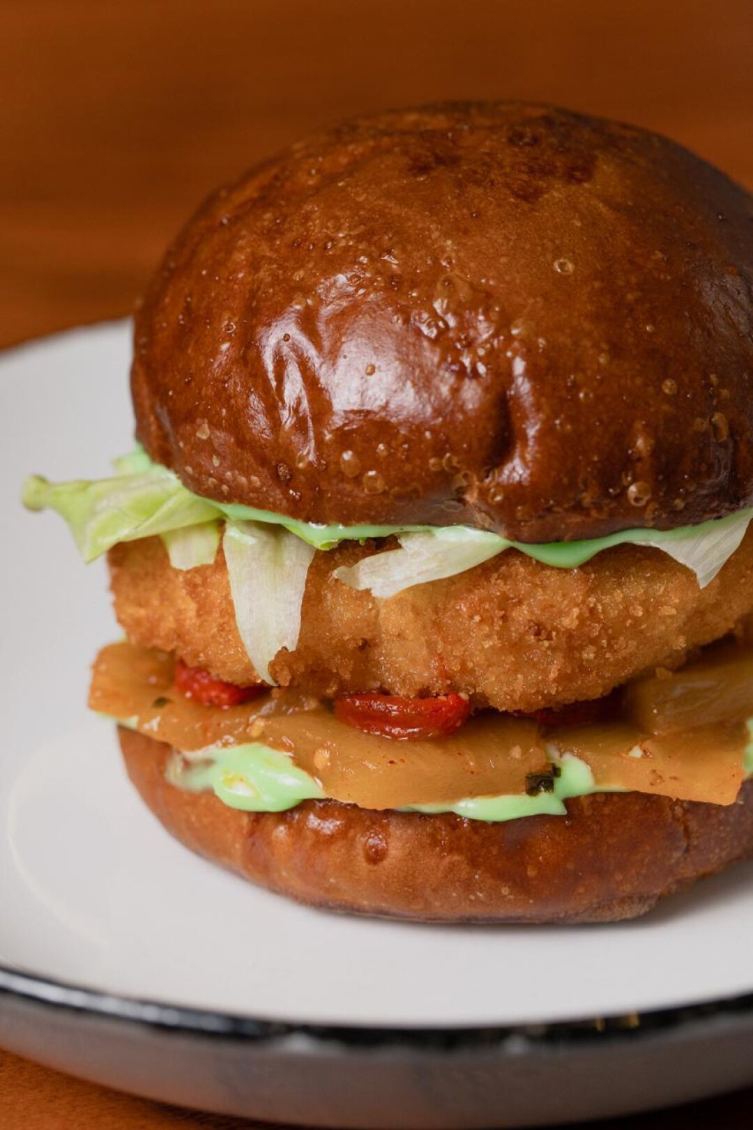 Блюдо недели: бургер с креветочной котлетой, ананасами кимчи, соусом из васаби и сгущенки, ягодами годжи и хрустящим айсбергом из коллабы бара от пивоварни «Бакунин» и китайской закусочной «Пища династии минь». Успеваем до конца ноября!
