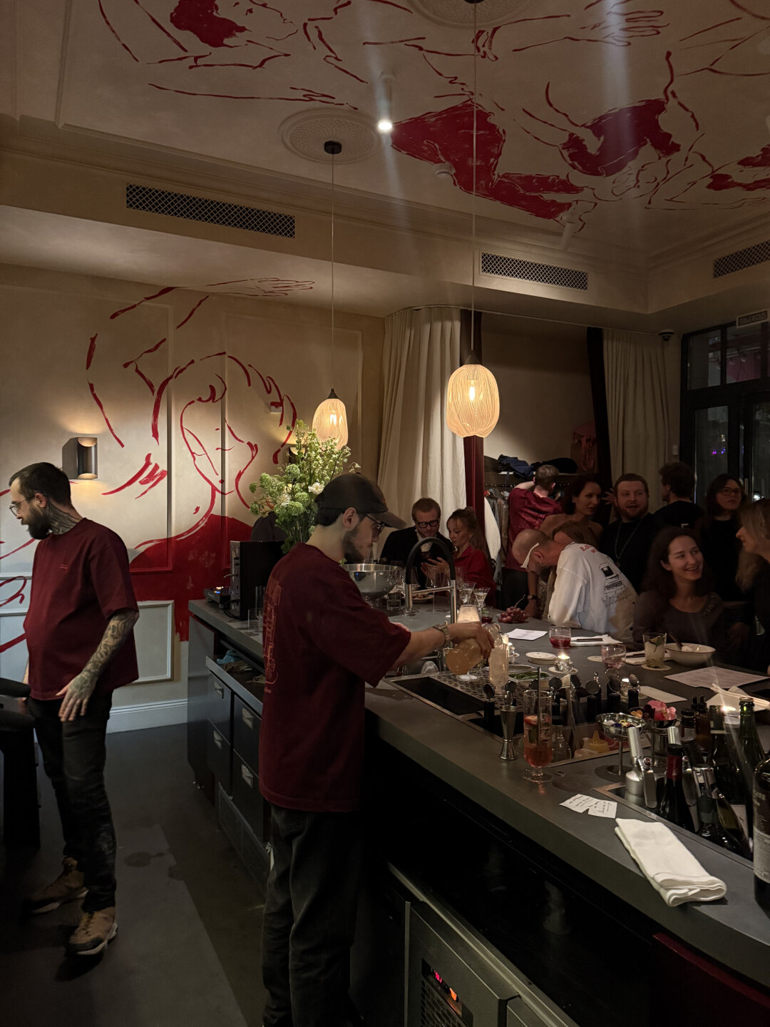 В интерьере появились муралы в исполнении художницы Екатерины Богданковой, а еще контактная барная стойка вместо витрины с десертами и много растений. В барной карте — классические коктейли и шесть напитков на основе вин от Даниила Золотухина и Дмитрия Гукасяна (Catch 22): шираз с джином и ежевикой, грюнер с вермутом и белым перцем и другие. Вину тоже уделили почетное место, карту составлял Анатолий Жданов (бокальные позиции регулярно обновляются). За музыкальную программу отвечает Алексей Миронов.