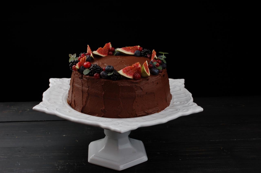 - Rich Chocolate Cake. Коржи на молоке и горьком шоколаде, пропитанные домашним сиропом на тёмном пиве, конфитюр из черной смородины, все это окутано облаком шоколадного мусса с добавлением натуральной ванили! Этот торт также хорош с клюквенным или брусничным конфитюром и домашним сиропом с добавлением рома.