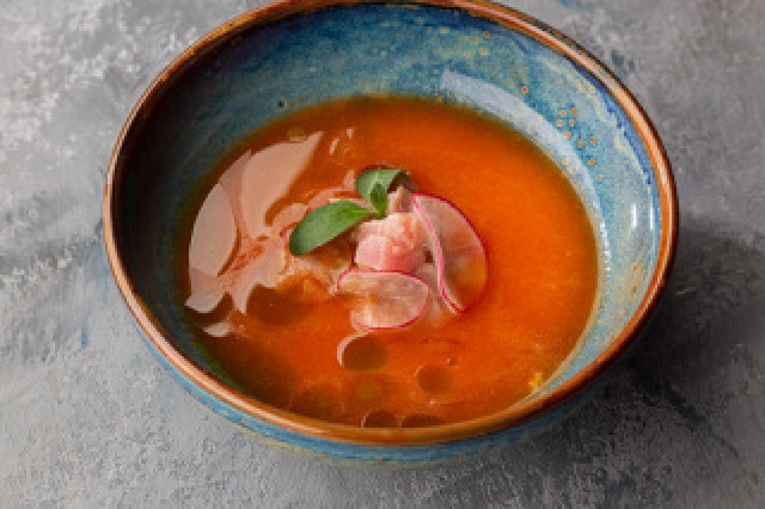 О редких жарких днях в новом меню тоже подумали. Для них — холодный суп из желтых томатов, печеных перцев с добавлением ананаса и тартара из тунца с кумкватом и ревенем.
