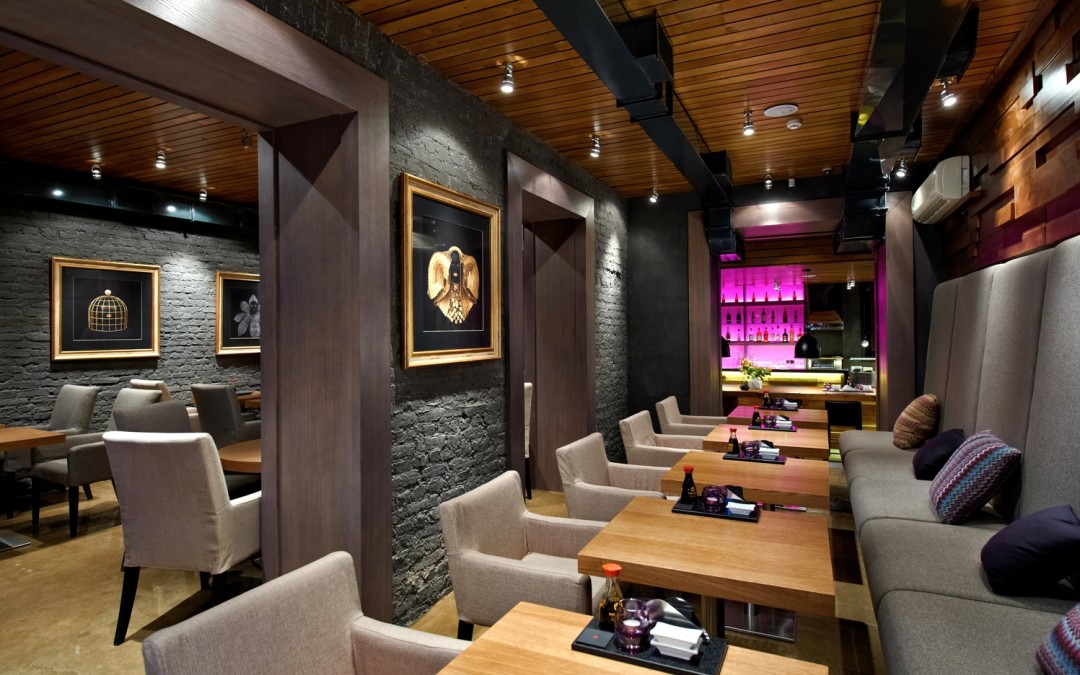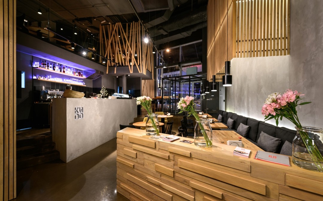 В «Ки-do» все интерьеры разные, но объединены одной концепцией. Дизайнеры сети любят использовать природные материалы – дерево, карельский мрамор, – а дополняют проекты мягкой мебелью, цветными креслами, зеркалами, картинами в рамах, живыми цветами и росписями петербургских художников. Кроме этого, в каждом ресторане есть свое индивидуальное световое решение. Например, «Ки-do» на Большой Зеленина украшает люстра-облако.