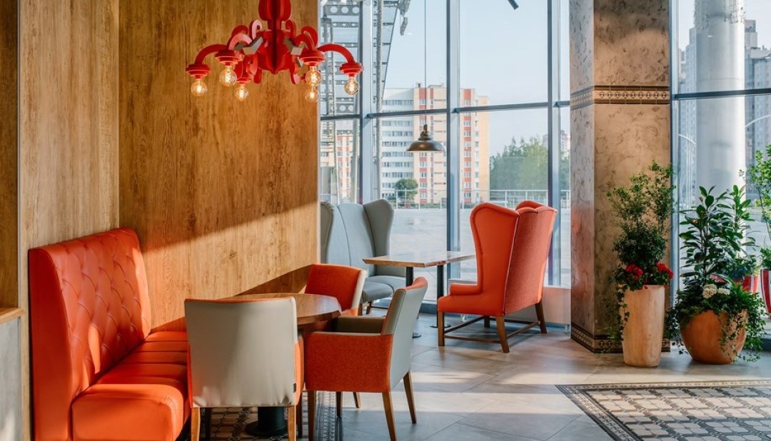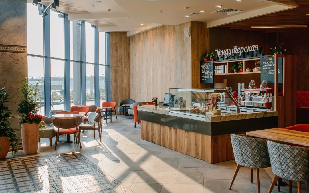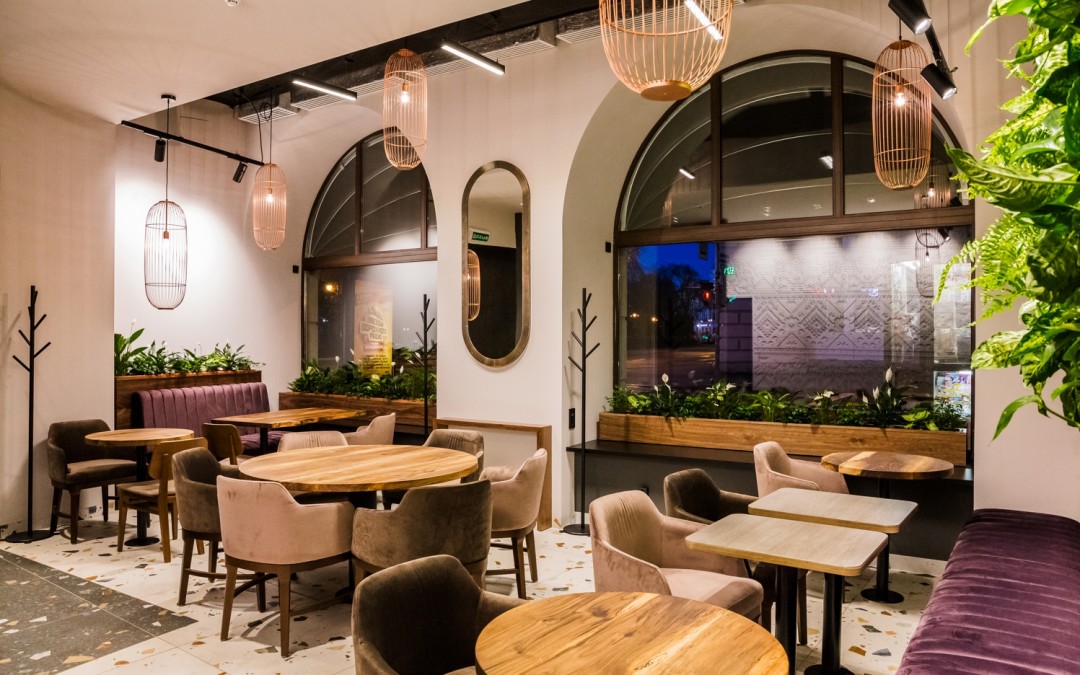 Первый «Теремок» в новом формате открылся в торгово-развлекательном центре «Питерлэнд». Среди дизайнерских решений, которые применили на площади 300 кв. м – панорамные окна в пол, живые растения, авторский декор и просторная лаундж-зона. Еще один ресторан в октябре запустили на Петроградской стороне, на Кронверкском проспекте, 47. Ответственным за интерьер стал архитектор Вячеслав Хомутов и его бюро Haubaus, который заложил в основу концепции яркие акценты. Теплую и уютную атмосферу создали благодаря деревянной мебели, светильникам ручной работы, узорной плитке и светлым оттенкам в отделке.