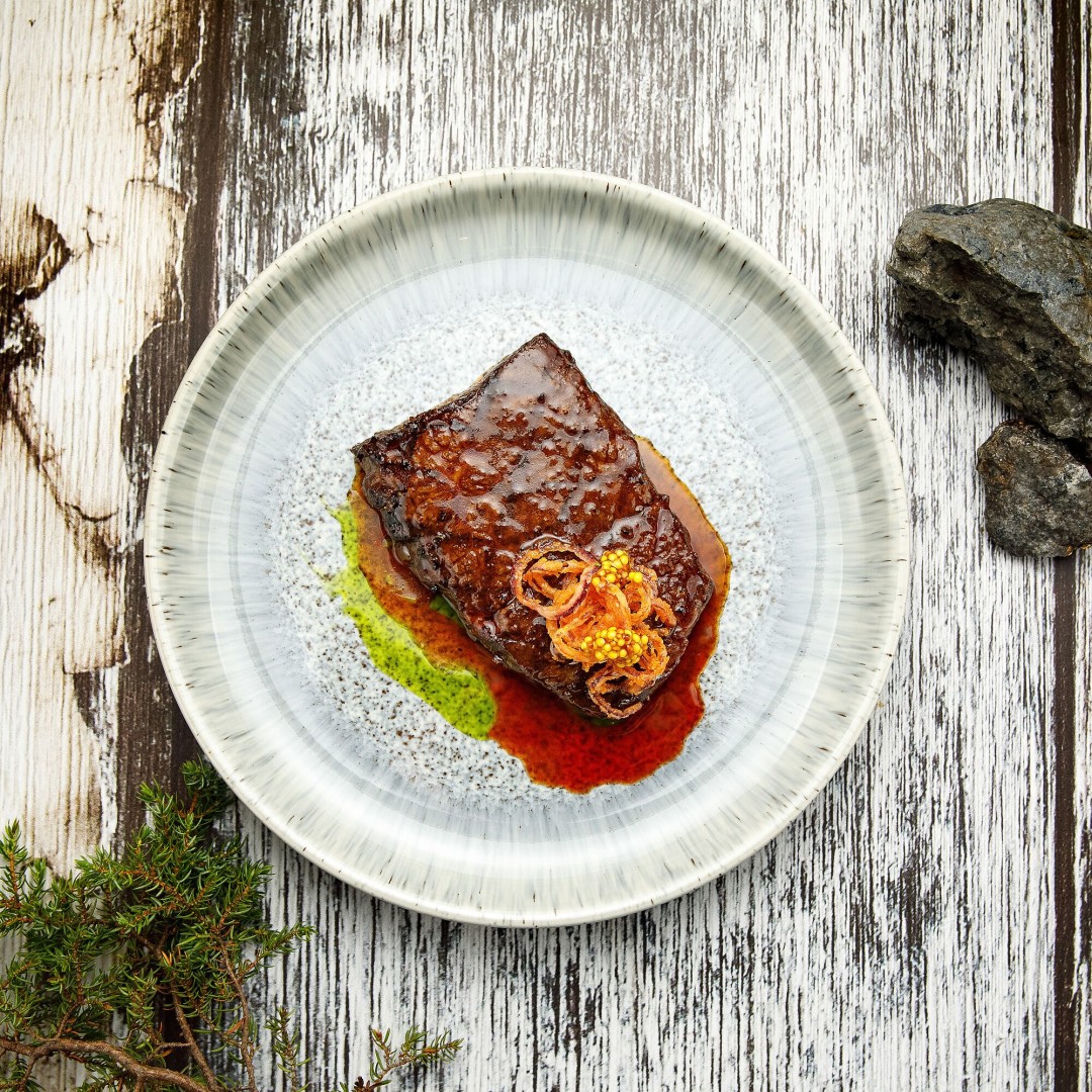 Меню – сезонное. Этой осенью посетителям предлагают попробовать стейк из оленины, который подают со смородиновым чатни, тартар из мраморной говядины с икрой щуки, а также суп из брискета и лапши «Доширак».