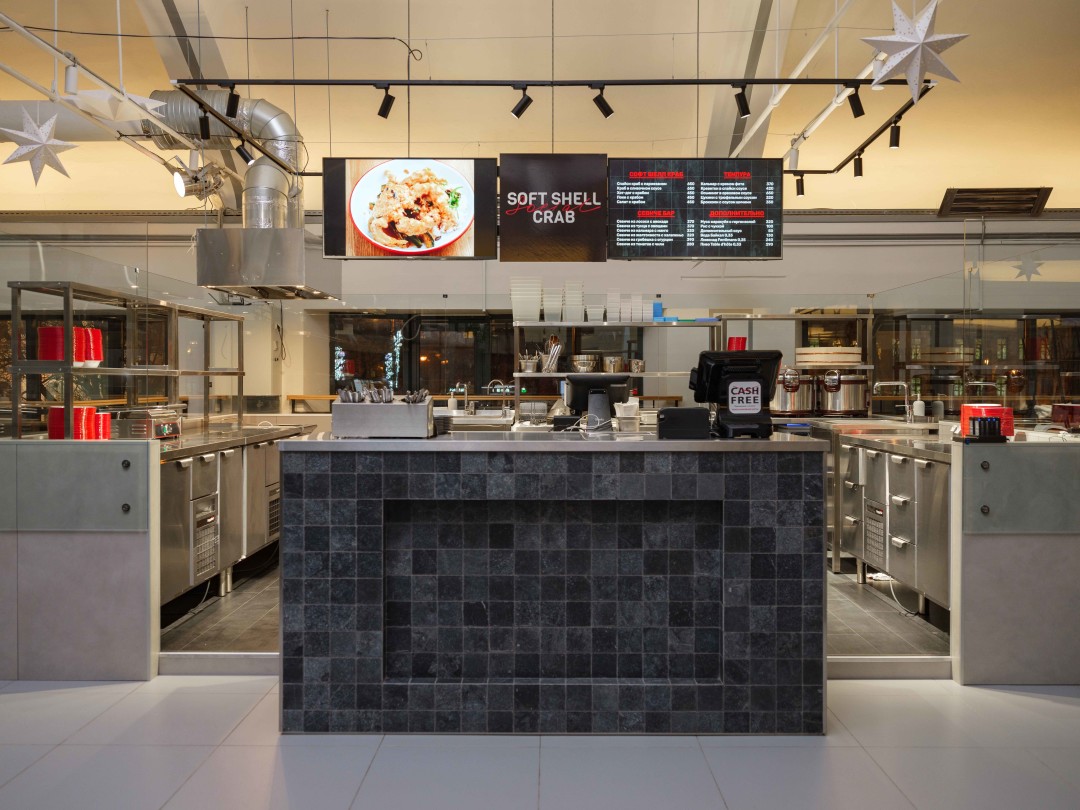 Киоск на рынке они сделали по всем канонам флагманских проектов: полностью открытая, отделенная от обеденного зала лишь стеклянной стеной, кухня, категоричный отказ от одноразовой посуды, строгий тайминг подачи блюд (заказ отдают максимум за 5 минут) и известная гибкость в работе с гостями. Из ноу-хау – политка «No cash»: на кассе принимают только карты, чтобы дополнительно сэкономить время.