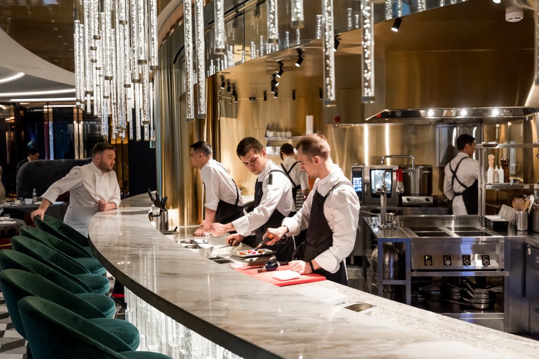 Несмотря на то что для владельцев — семейной пары Артема Гудченко и Светланы Гузь — это первый ресторанный проект, ни на какие компромиссы они не пошли: ресторан строили целых два года, оформлять интерьер позвали модных московских дизайнеров сестер Сундуковых (так появился круглый камин, отделанная золотом кухня и мебель ручной работы из вяза — в общем, тотальный шик), винную карту доверили шеф-сомелье Андрею Бражко, прежде работавшему в Big Wine Freaks и Il Lago dei Cigni, а кондитерский цех — Наире Соседовой, номинантке ресторанной премии «Собака.ru», еще недавно придумывавшей замысловатые десерты в ресторане «Кококо».