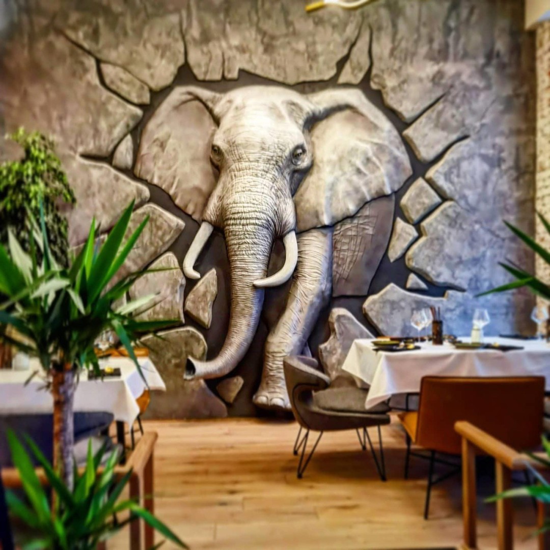 Большой двухэтажный ресторан от Che Group в двух шагах от Парка Победы. Азиатская еда, складное зонирование, вертикальное озеленение, много обезьян и слон в натуральную величину. Главная рекомендация: местный том ям.