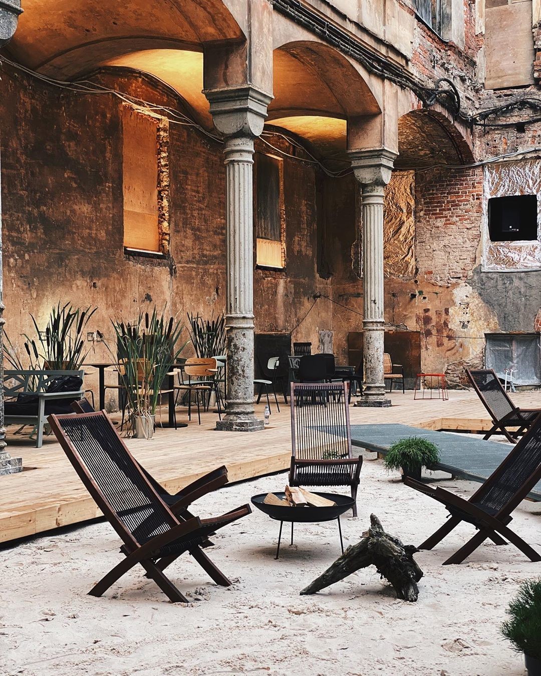 Устричный двор-пляж «12» в пространстве «Третье место» в стенах исторического дворца Лопухиных и Нарышкиных середины 19 века на Литейном проспекте, 62. Интерьер от DA bureau, за еду отвечает Oysters by Cake – сайд-проект кафе Cake&Breakfast: морепродукты из Севастополя и игристое по гуманным ценам.