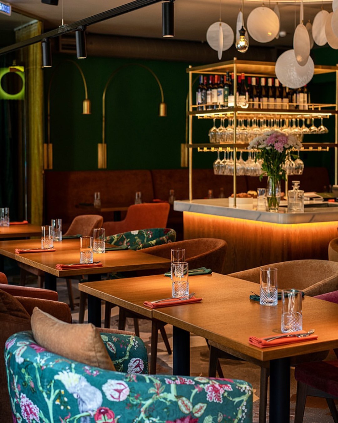 Затейливая еда в нарядных интерьерах от Ксении Смирновой на улице Восстания, это второе место ресторатора Александра Первака. Десерты выложены в витрине и занимают добрую треть меню: лимонный чизкейк с меренгой, шу с фисташковым кремом, морковный кекс.