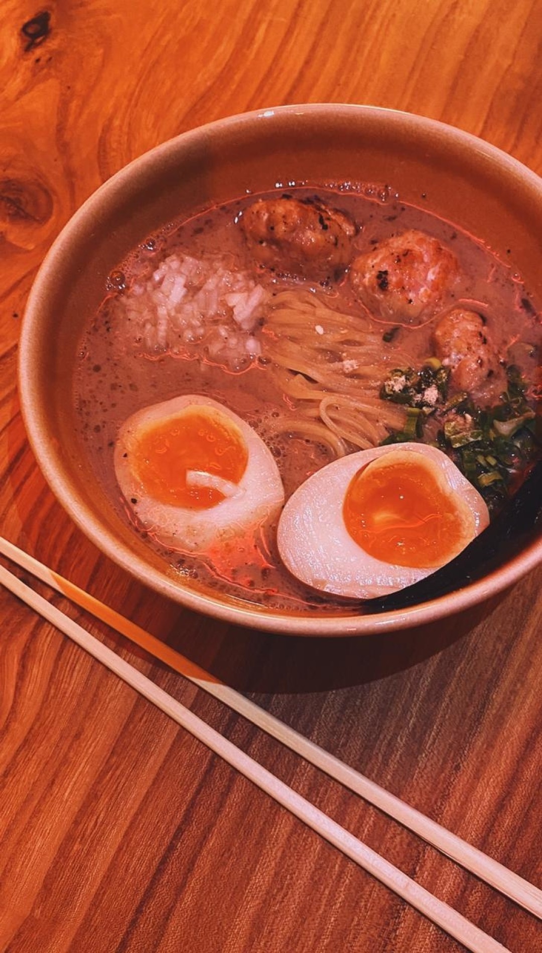 Раменная The Noodist открылась на Кирочной улице, 9. Евгений Демьяновский — идеолог проекта — пришел к концепции через опыт своего бургер-бара Бутерbrot, который работает в Омске уже пятый год. В Петербурге же все началось с фудтрака (разрисованного стрит-арт художником Маратом Абышевым) и работы в разгар пандемии в Никольских рядах.
