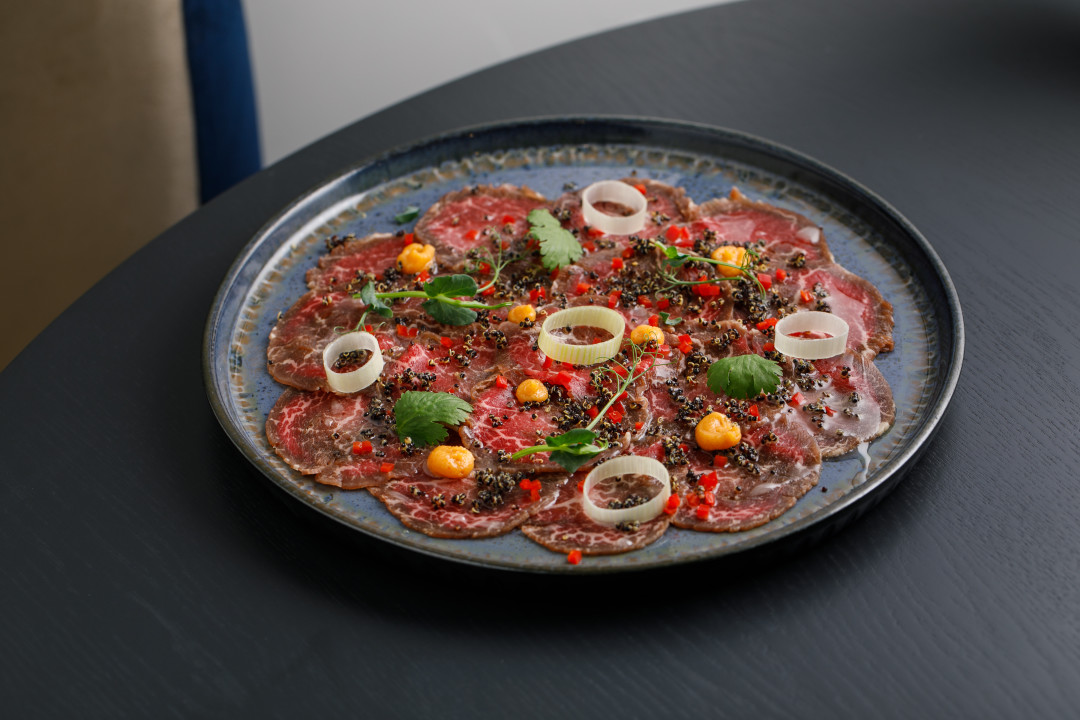 Идеологи проекта Равиль Шайхайдаров (экс-соучредитель Department 57) и Екатерина Поташова (Ginza Project) считают, что нужно удовлетворять любой запрос гостя. Поэтому шеф-повар Александр Стегэреску (Terrassa, МариVanna в Лондоне, «Едим руками») помимо эксклюзивного целого лобстера и других морских и речных обитателей (берем все гриль версии) включил в меню еще пиццу (из рисовой муки), пасту, бефстроганов, куриную печень и медовик.