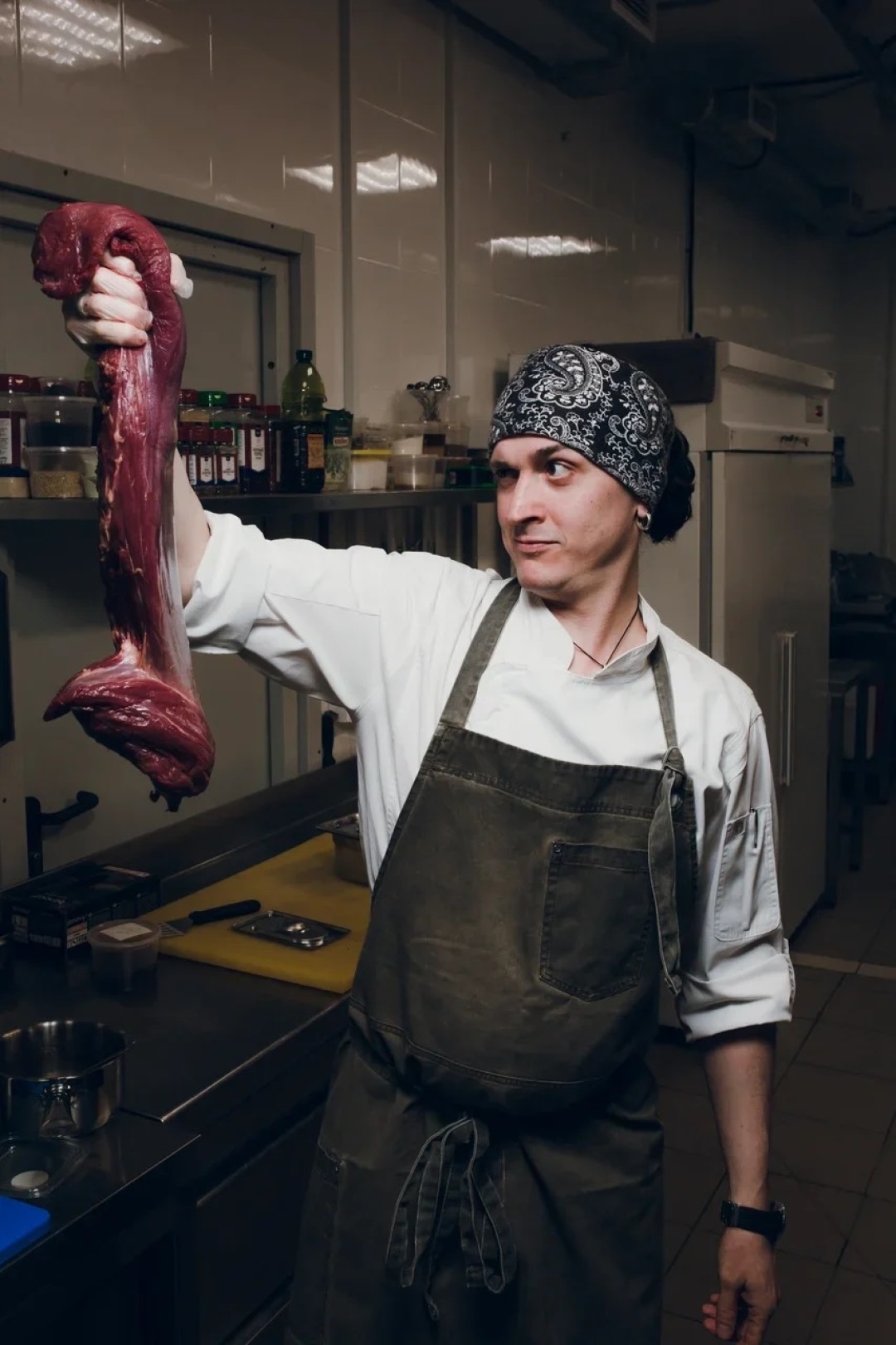 Основное меню ресторана включает внушительный раздел сырых блюд: татаки из дорада с кимчи из дайкона, тартар из гребешка с черным чесноком или карпаччо из лосося. В списке горячих блюд значатся фуагра с булочкой бриошь, черной смородиной, кислицей и фундуком, стейки, утка конфи и каре ягненка.