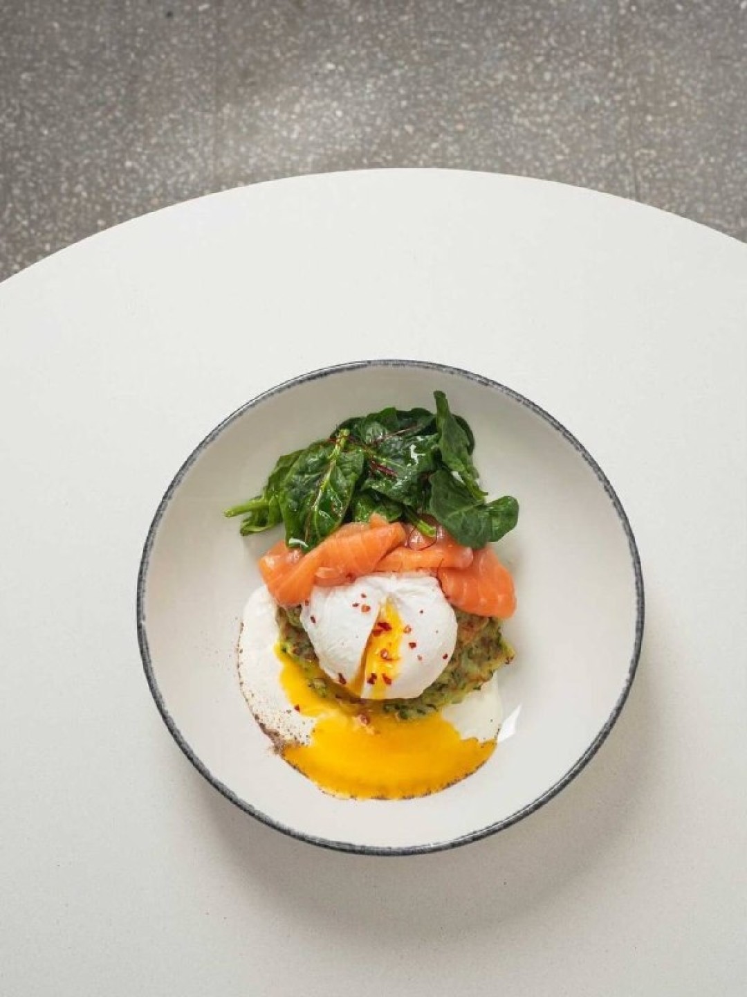 Здесь целый день предлагают 24 блюда на завтрак: от классического авокадо тоста, каши, сэндвичей и яиц до бананового хлеба со сливочным кремом и розой, трюфельного бенедикта и матча панкейков. Не забыли позаботиться и о веганах — есть овсяные блинчики с домашней нутеллой, нежнейший кокосовый суп с фасолью, томатами и шпинатом и даже бургер с тофу и капустой кимчи.