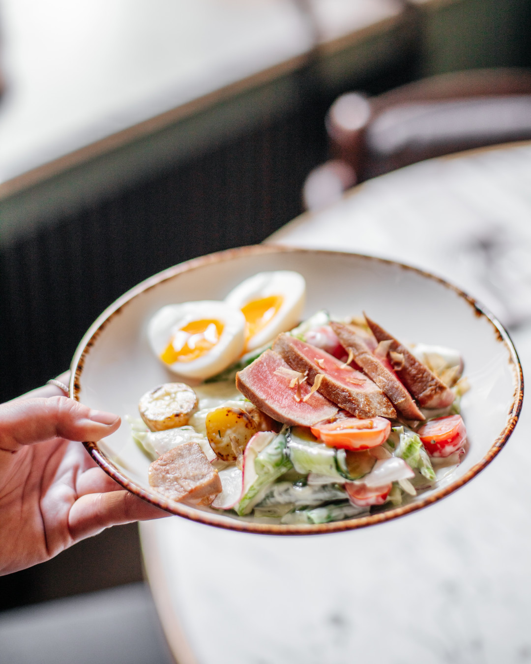 Шеф-повар Алексей Никитин, ранее трудившийся в Animals, BWF и «Фартуке», разработал меню на основе фермерских продуктов.