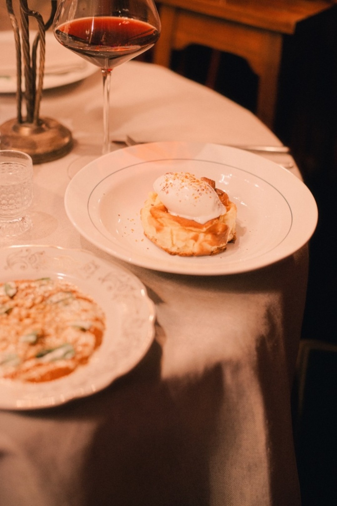 Раздел «sweet as first love», очевидно, отдан десертам. Шоколадный трюфель готовят с аджикой, чизкейк из надуги с мороженым из йогурта, а домашнее мороженое — из халвы. В винной карте грузинские оранжи и розе, а также вина Старого света. Однако, скажем по-секрету, не может быть финиша удачнее, чем рюмка домашнего дистиллята из хурмы!