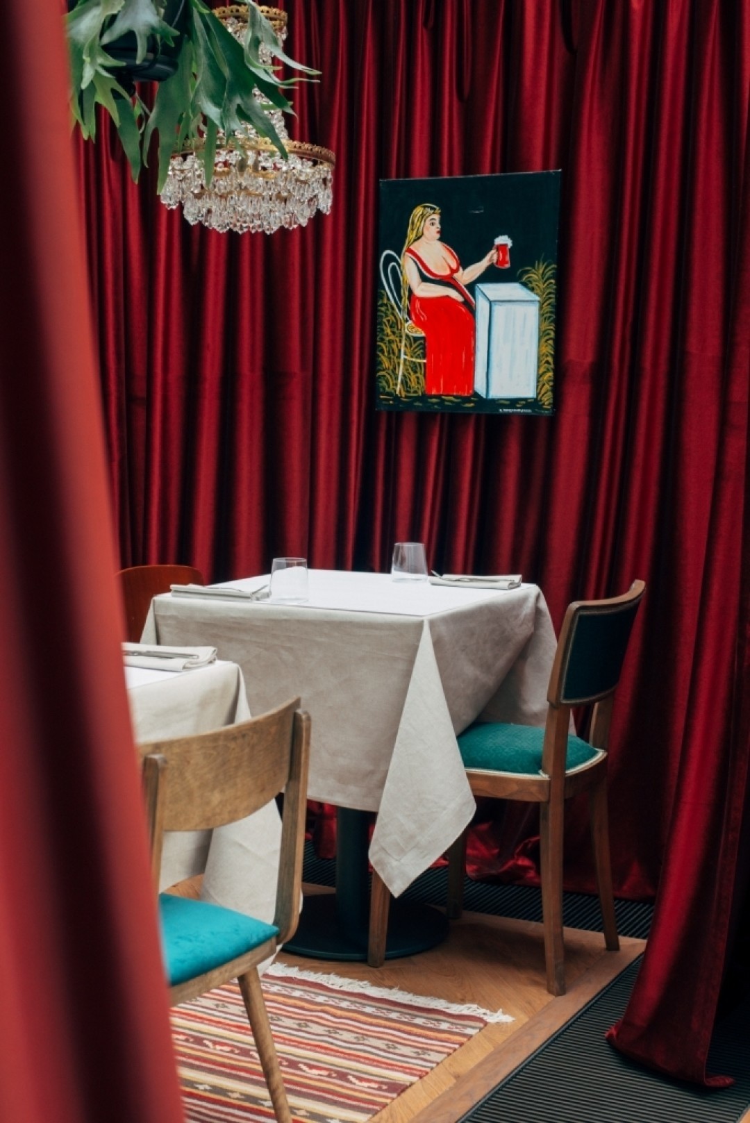 Пятый ресторан команды гастробаров «Компания» получился очень театральным. В одном акте выступает Грузия с картиной Нико Пиросмани «Женщина с кружкой пива», хачапури и хинкали, в другом — Греция с изрядным количеством мезе и дзадзики, а в третьем — Ближний Восток с хумусом.