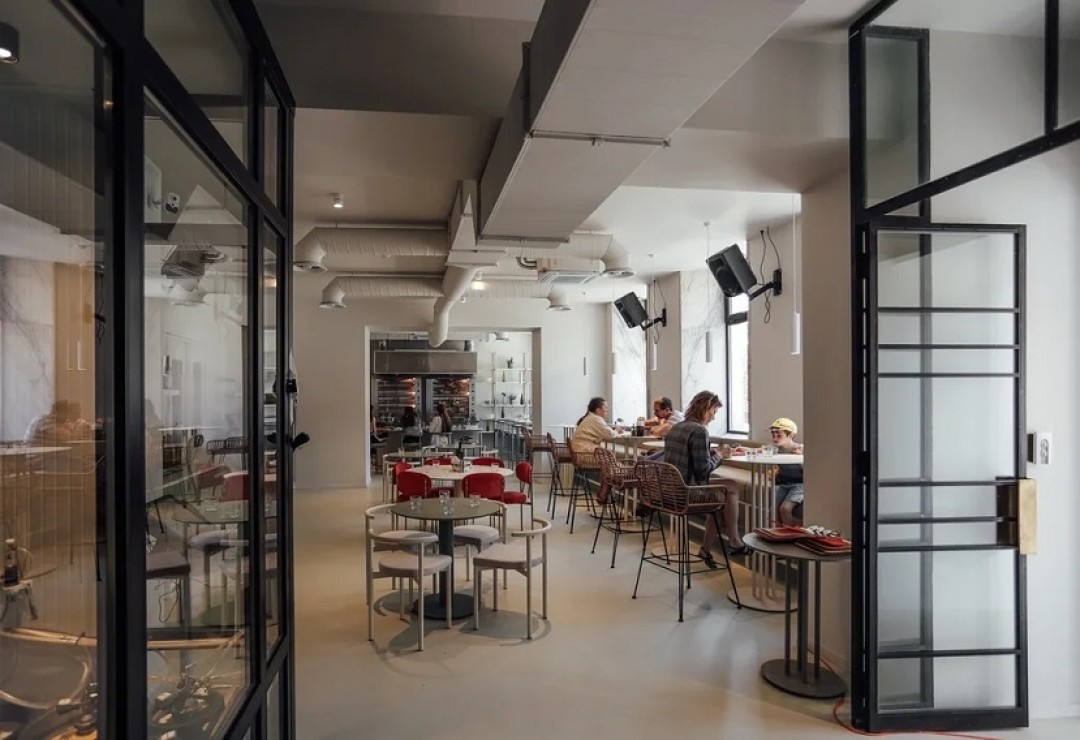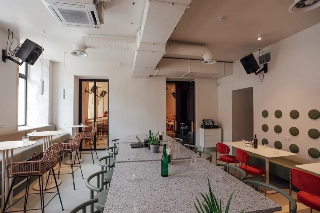 В ростичерии два зала, оформленных в светлых нейтральных цветах. В одном из них будут проходить музыкальные вечеринки (с виниловыми проигрывателями!), за которые отвечает диджей Антон Куровой, в коллекции которого собрано около 3 тысяч пластинок.