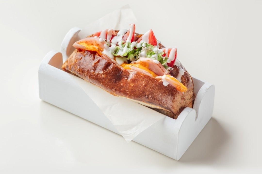 Шеф-повар Владислав Добровольский (работал в «буше», «Хачапури и вино») считает, что любой бан нужно есть так, чтобы максимально запачкаться (а по другому все равно никак), кусать сверху хрустящую булку, пытаясь не уронить драгоценных продуктов: сосиску, куриный шницель, креветки с чили и апельсином, цветную капусту или ветчину индейки с ультратянущимся чеддером и клюквенным соусом. Можно прийти в 8 утра (похоже самые ранние завтраки на Невском!) и попробовать баны со скремблом, колбасками или с авокадо, сливочным кремом, яблоком и бланшированным зеленым горошком.