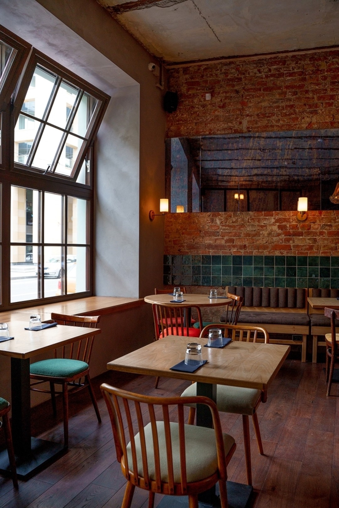 Имя заведению досталось от предприятия ленинградской торговли, которое с 1956 года располагалось по этому же адресу – Б. Зеленина, 19. Сейчас здесь совмещен бар и ресторан, в котором могут разместиться 40 гостей. В интерьере – винтаж и антиквариат в освобожденных от многолетнего гипсокартона стенах. Старинный финский комод за стойкой, на ней – итальянская кофемашина Faema 1961 года c неоновой подсветкой задней панели (внешний вид машины определил ей место в музеях промышленного дизайна!). Керамическая посуда, кстати, из Бельгии – на ней подается все кроме стритфуда, который выносят на эмалированных подносах.