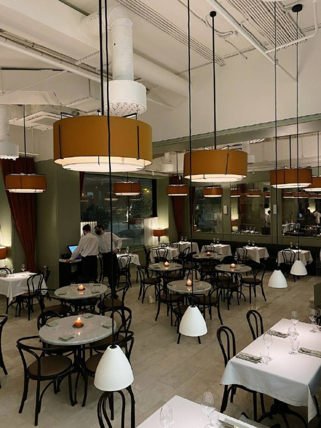 Масштабный рыбный ресторан Антонио Фреза (Jerome, Saviv): ледники и аквариум на 2300 литров, лавка с деликатесами, кухня с десятком цехов от пекарни до лаборатории пасты, «Улов дня» со всего мира, raw-бар с морепродуктами в виде карпаччо, севиче, тартаров и плато. Тональность меню фирменная для Антонио — Италия и Израиль.