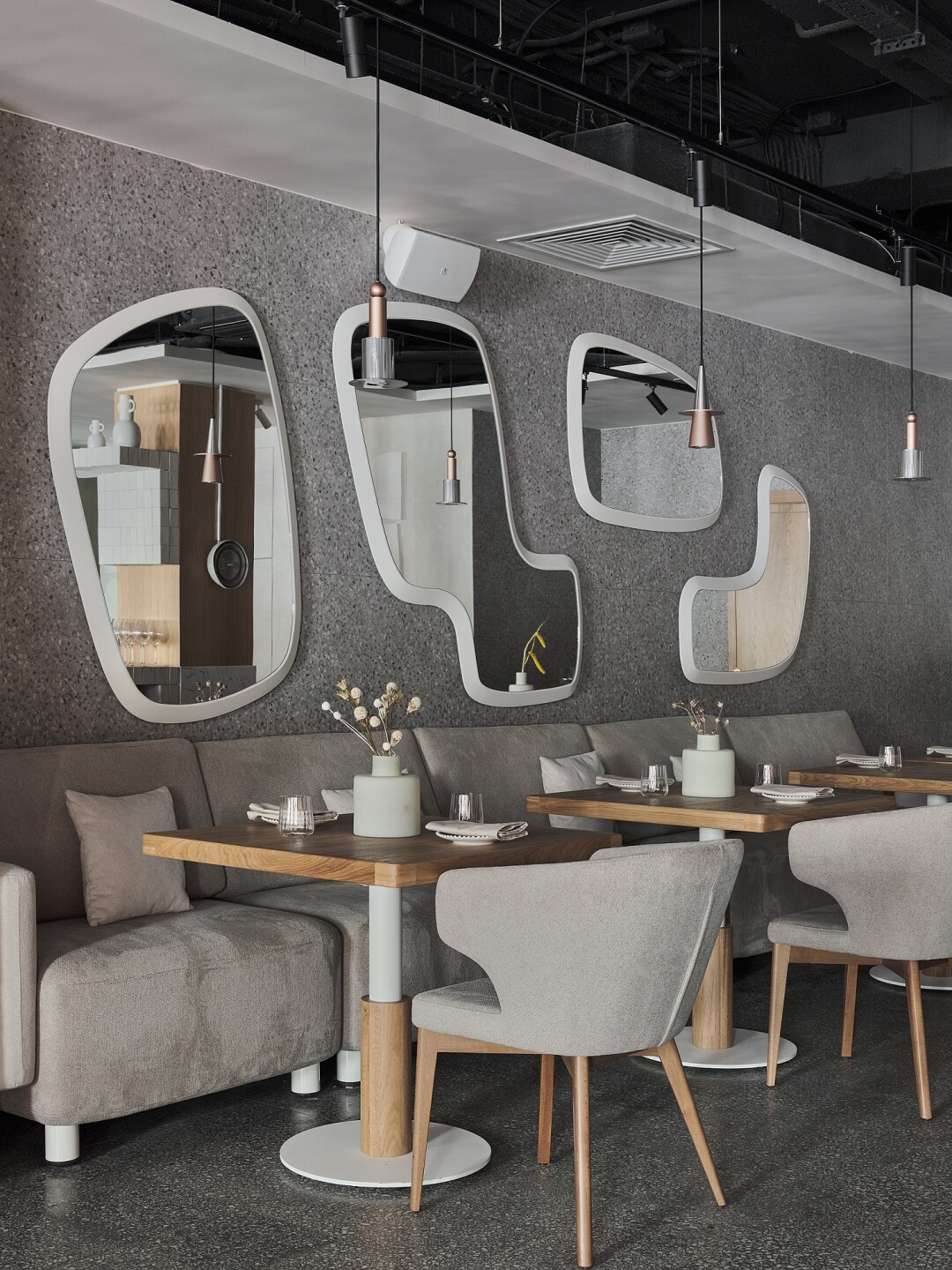 Меню умещается на один лист. Тут же нокаутирует раздел raw c морепродуктами из аквасистемы, установленной в ресторане. Далее значатся «спреды» — создатели решили, что нет лучшего слова для раздела с дзадзики, фавой из нута, сливочным кремом из феты с печеными томатами и правильным бабагануш. Лепешку, прижаренную, хорошо сдобренную специями, для всего этого придется заказать отдельно.