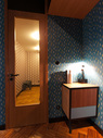 Вся мебель сделана на заказ. В закругленном пространстве отсутствуют прямые углы, а на укладку затейливого паркетного пола из тиковых плашек ушло почти два месяца. В витринах за стеклянными дверцами вдоль стен — много декоративных вещей вроде фарфоровых сов и подсвечников.