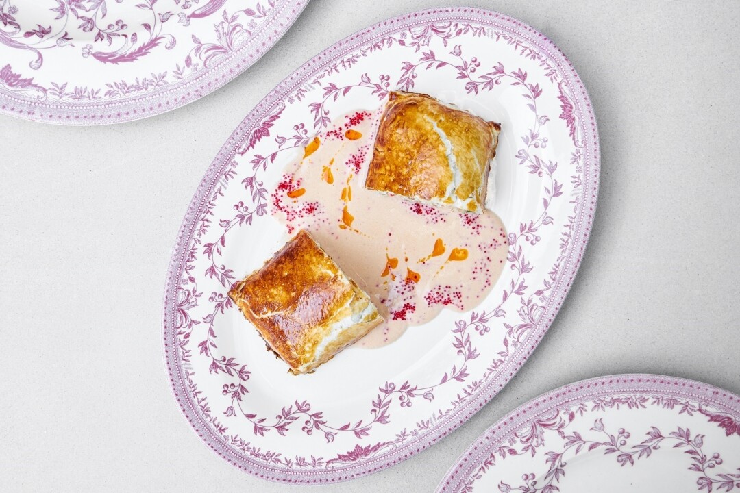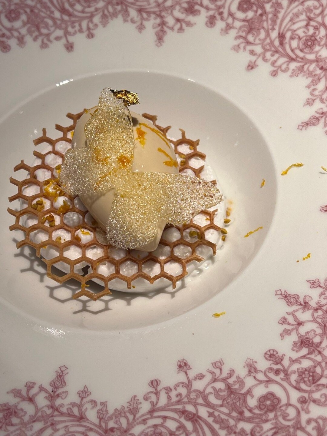 Десерты придумывает и готовит Ксения Соловьева, бывший кондитер закрывшегося файн-дайнинга Eclipse в Репино, откуда перенесла любовь к сложным конструкциям, формам и текстурам. Легкий гречишный медовик с арахисовым кремом и мороженым из банана украшает невесомой карамельной бабочкой, тарт татен делает луковым с грушей и трюфелем и дополняет сусальным золотом.