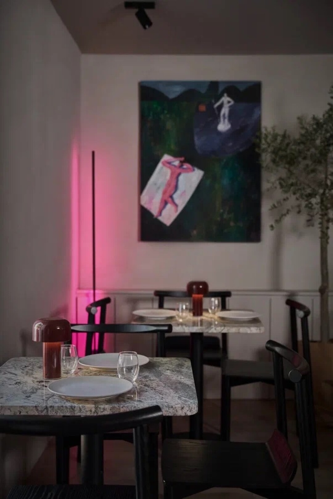 Йогу с вином здесь практикуют два дня в неделю — как и полагается, в самые праздничные пятницу и субботу. В отдельном небольшом зале на 9 мест, который от основного отделяет стеклянная витрина, сначала сомелье знакомит с выбранным образцом, затем асаны, а после любимой редактором «позы трупа», снова бокал вина.