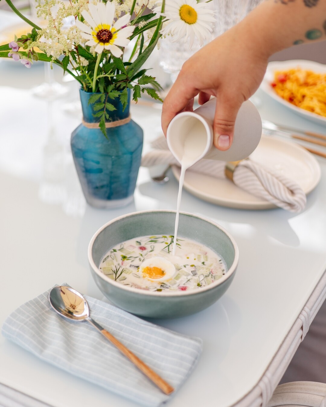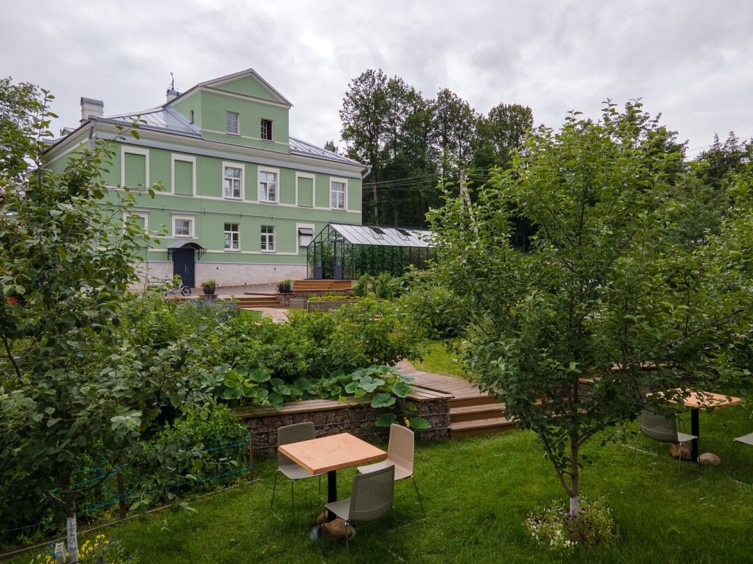 Своим собственным огородом могут похвастаться единицы ресторанов. Самый известный — Twins Garden в Москве с фермой в Ярославской области. В Петербурге эту нишу занимает Animals, у которых хозяйство под Псковом. У Антоновых же все растет прямо во дворе особняка, на участке в 35 соток, а поливается водой из святого источника. Садовник-профессионал Елена Дробышевская выращивает здесь 37 (!) видов томатов, огурцы, перцы и горох. На грядках — рукола, латук и даже спаржа, рядом — малина, всевозможная смородина, крыжовник, клубника, а под дивными яблонями, вишневым и грушевым деревьями стоят столики и беседки. Урожай Елена собирает до октября, а из припасов на кухне делают заготовки: травяные масла, маринованный крыжовник, цветочный или хвойный уксус.
