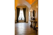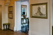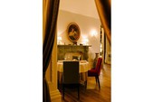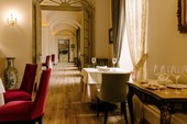 «Дом» собирается стать отчим законодателям — не моды или стиля, а в прямом смысле этого слова: прямо под боком Законодательное собрание Санкт-Петербурга, офис компаний «Газпром» и «Адамант», обитателей которых тоже можно считать власть имущими. Есть что-то даже похвальное в честности подхода, когда спрос абсолютно тождественен предложению, без попыток удивить, воспитать или, за отсутствием альтернатив, напугать. Ничего этого не делать обещает уже интерьер в духе декоративного классицизма. Много небольших залов в гастрономической части ресторана способствуют чинному уединению, присутствует даже миниатюрная библиотека с собранием сочинений классиков всех мастей. Без надежды быть хоть раз открытыми, они призваны, видимо, деловым трапезам прибавлять респектабельности. Живопись на стенах начинается сюрреалистическими натюрмортами из частной коллекции, с которыми вполне можно согласиться, но, чем дальше вглубь, как водится, тем больше появляется фламандских виньеток.