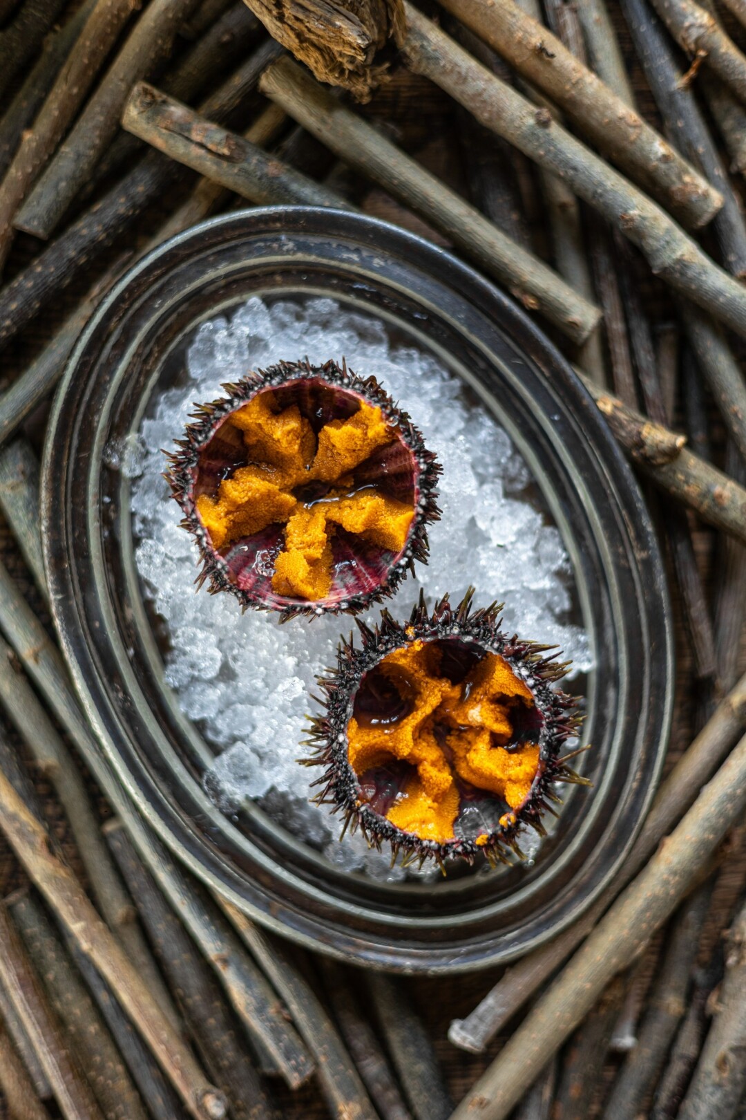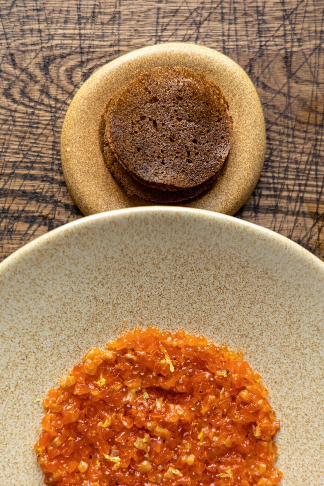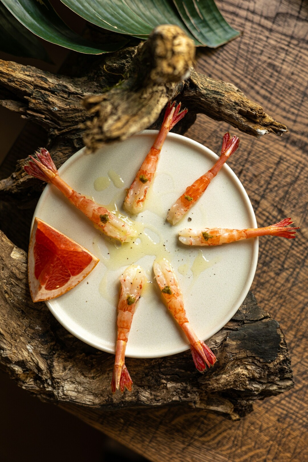 За кухню отвечает бренд-шеф Ярослав Свинцов (экс-шеф, к сожалению закрывшегося «Лобби-бара заблудшего дракона»). Если вы у него спросите, что здесь попробовать в первую очередь, он посоветует «Закуску териберского рыбака». Это идеальное в своей простоте блюдо из раздела «Сырое» — тарелка свежайших морских ежей и гребешков с красной икрой. Тут же найдете и «суп териберского рыбака», принесший Grebeshki на Арсенальной победу в премии «Что Где Есть в Петербурге» — 2022 в категории «Лучшее блюдо с отечественным сифудом».