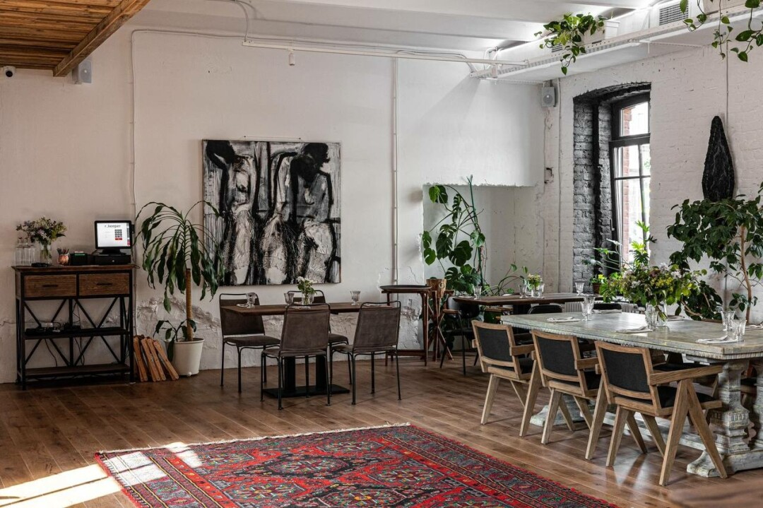 В новом эко-лофт пространстве много света и зелени, два основных зала и отдельный кабинет, а на входе, по традиции, аквариум с живыми крабами, ежами и гребешками. В планах — завтраки, гостевые и винные ужины.