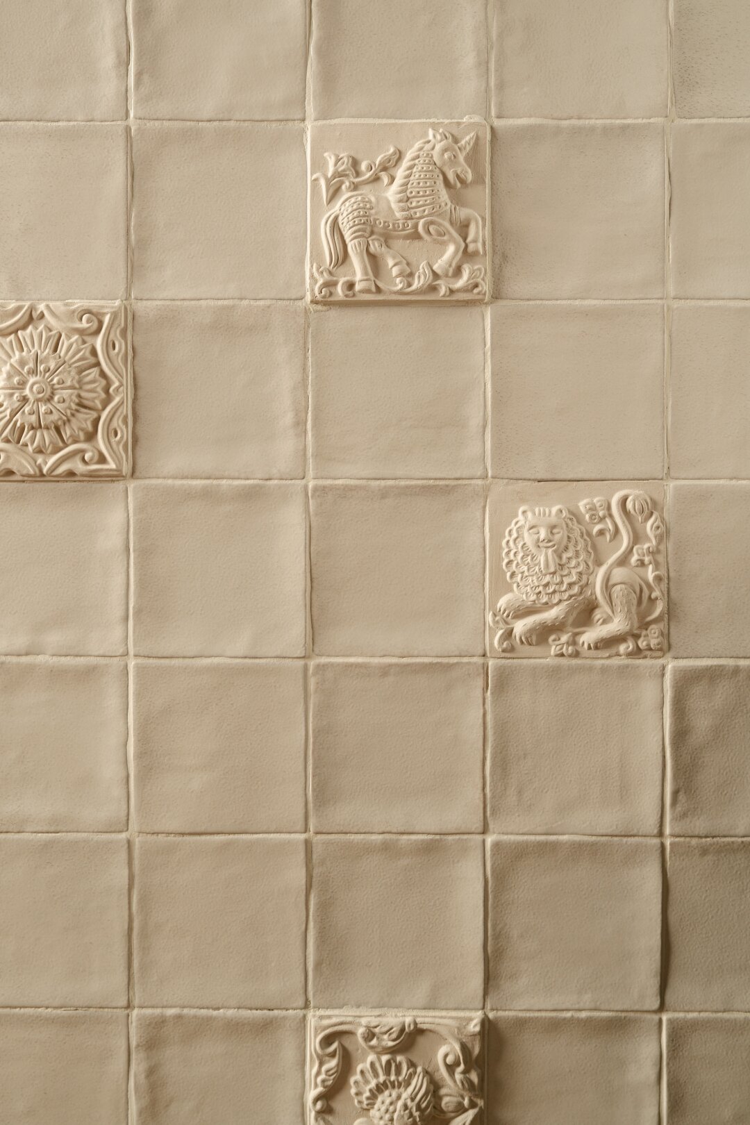 Над дизайном интерьера работала Ксения Смирнова (Salone pasta bar, Sea, Signora, Tondo, Kira) и отобразила русский дух в изящных нюансах: резные наличники на зеркалах, льняные шторы-перегородки с вышитым кружевным ромбовидным узором, а на входе встречают изразцы ручной работы из белой глины (майолика!) с изображением древних символов, которые служили оберегами славянских народов.